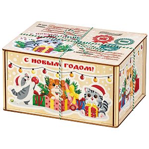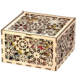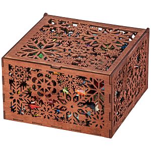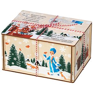 Упаковка из дерева применяется скорее для взрослых, чем для детских сладких новогодних подарков. Дерево не всегда позволяет нанести понятный детскому сознанию рисунок.