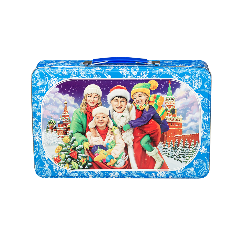 Подробнее о доставке«Чемодан Семейный» - очень красивый, яркий и по-настоящему новогодний сладкий подарок. Упаковка выполнена из качественного металла, крышка которого плотно и удобно закрывается. Сверху на упаковке имеется удобная ручка из мягкой пластмассы. На лицевой стороне упаковки изображена дружная семья на фоне главной площади страны. Они уже готовы к встрече волшебного зимнего праздника. Внутри Вы найдете целый килограмм кондитерских изделий от лучших кондитерских фабрик. Мы с большой ответственностью подходим к формированию сладкого наполнения уже на протяжении долгих лет, и всегда учитываем вкусовые качества наших любимых покупателей.