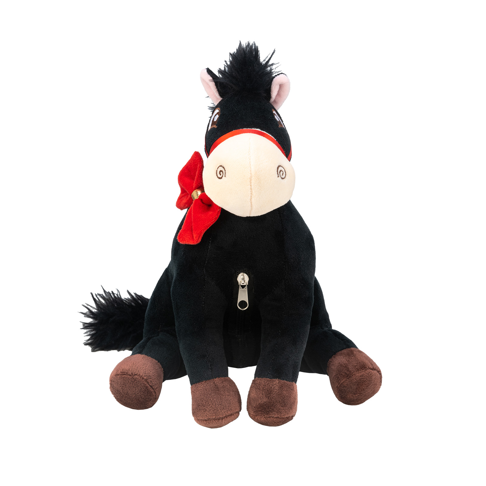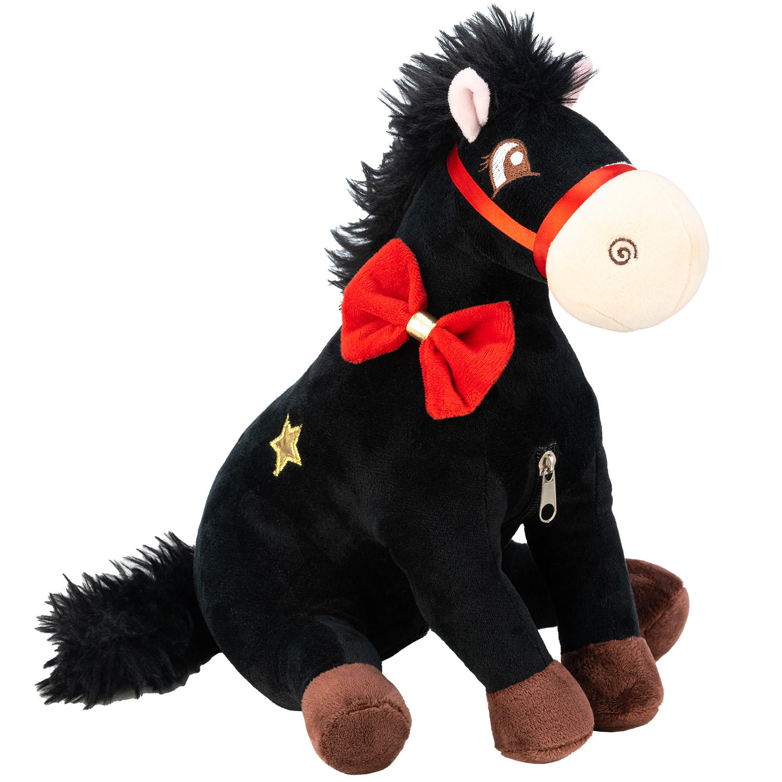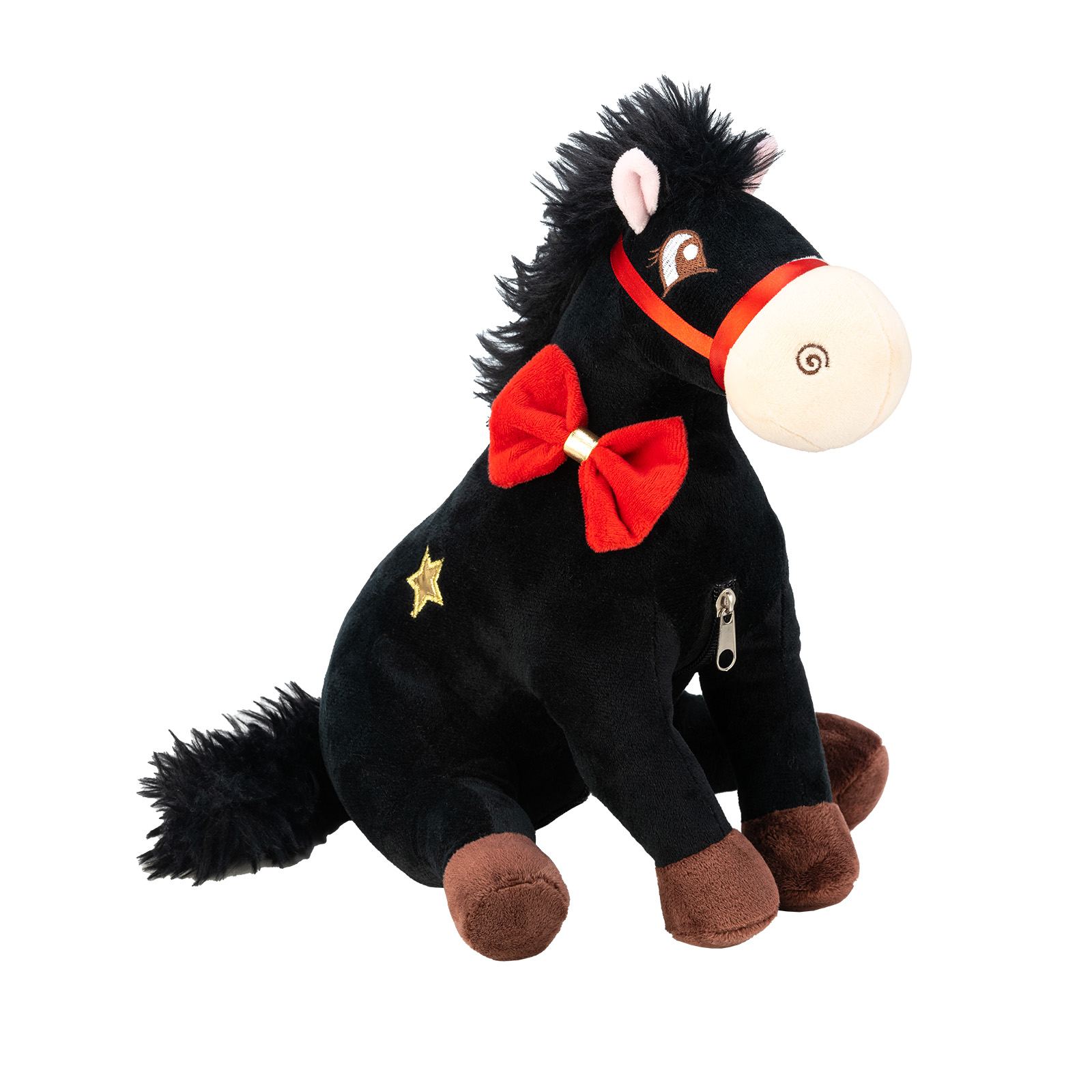 Новогодние сладкие подарки в виде символов года всегда вызывают сильнейший интерес - особенно, когда этот подарок выполнен в виде очаровательной текстильной игрушки. Подарочный набор “Гамлет” - это загадочный угольно-черный благородный жеребец, который прибыл к нам в гости из своей волшебной страны. На нем надеты контрастная ярко-красная сбруя и небольшой очаровательный галстук-бабочка. Гамлет уже готов к знакомству с новыми друзьями - лучше всего это делать за чашкой горячего ароматного чая  с вкусными конфетами! Тем более сладости к столу Гамлет уже приготовил, бережно донеся их из своей далекой страны.