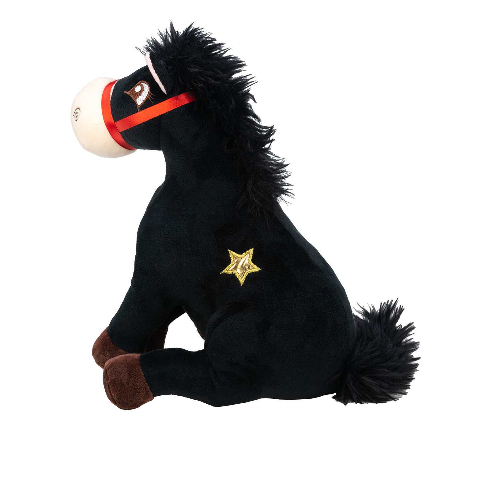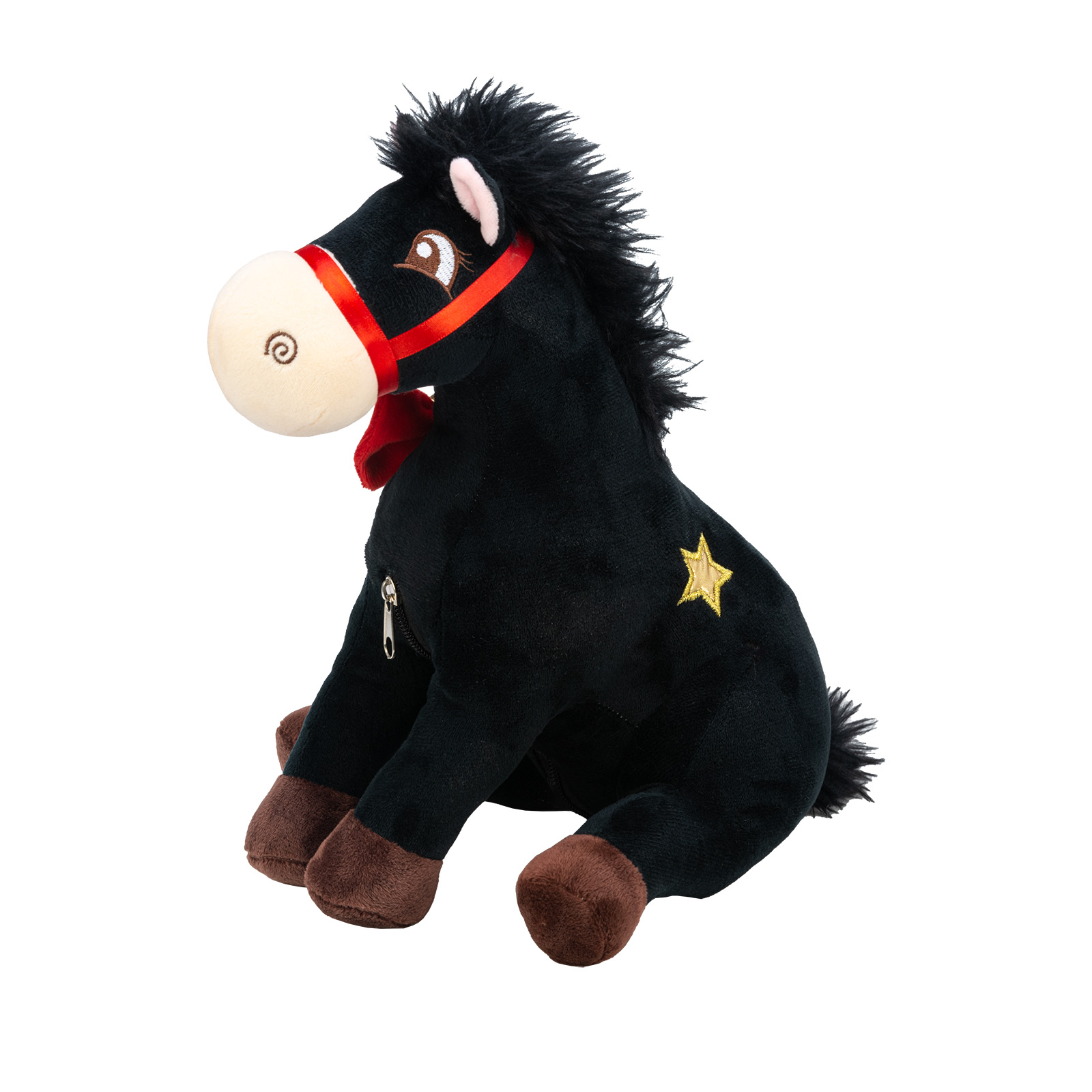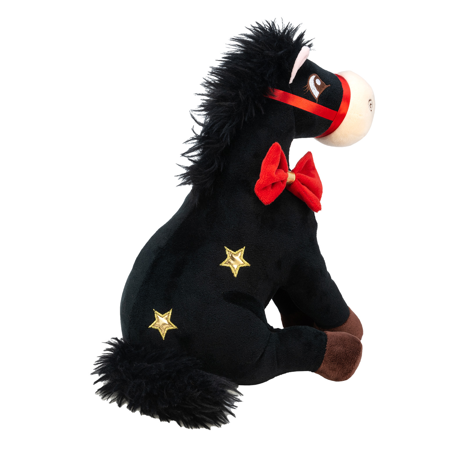 Новогодние сладкие подарки в виде символов года всегда вызывают сильнейший интерес - особенно, когда этот подарок выполнен в виде очаровательной текстильной игрушки. Подарочный набор “Гамлет” - это загадочный угольно-черный благородный жеребец, который прибыл к нам в гости из своей волшебной страны. На нем надеты контрастная ярко-красная сбруя и небольшой очаровательный галстук-бабочка. Гамлет уже готов к знакомству с новыми друзьями - лучше всего это делать за чашкой горячего ароматного чая  с вкусными конфетами! Тем более сладости к столу Гамлет уже приготовил, бережно донеся их из своей далекой страны.