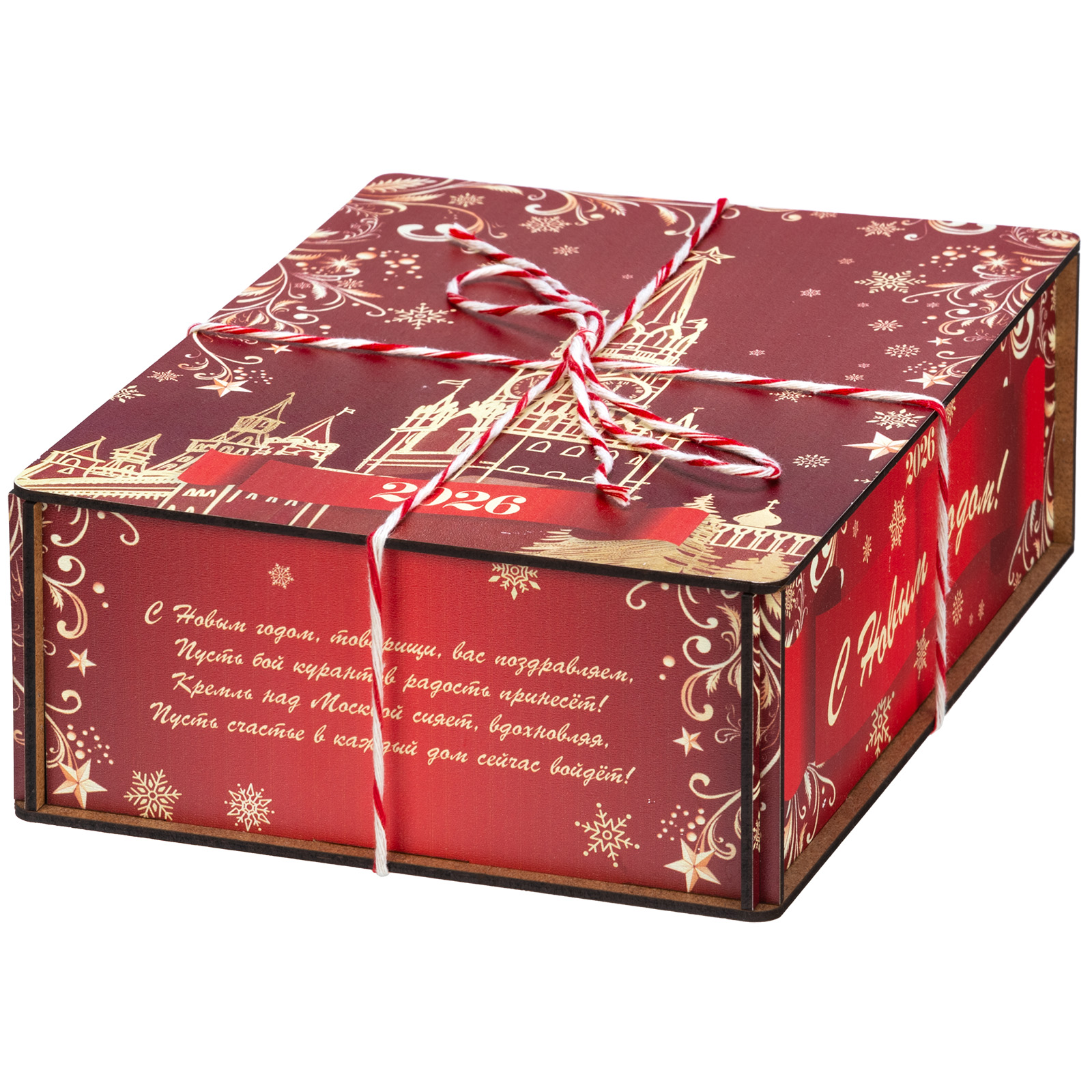 Ищете новогодний сладкий подарок коллеге, педагогу или руководителю? Обратите внимание на подарочный набор “Кремль”, который идеально сочетает в себе солидную красочную упаковку и превосходный вкус кондитерских изделий Подарочная упаковка выполнена из качественного дерева и окрашена в разные оттенки красного цвета. Со всех сторон можно увидеть контрастные узоры и поздравительные надписи, а на крышке изображен один из самых узнаваемых новогодних символов - Кремлевские куранты. В состав подарка входит килограмм разнообразных кондитерских изделий от ведущих кондитерских предприятий и небольшой памятный сувенир в виде символа наступающего года. Такой прекрасный подарок сделает любое новогоднее торжество незабываемым.