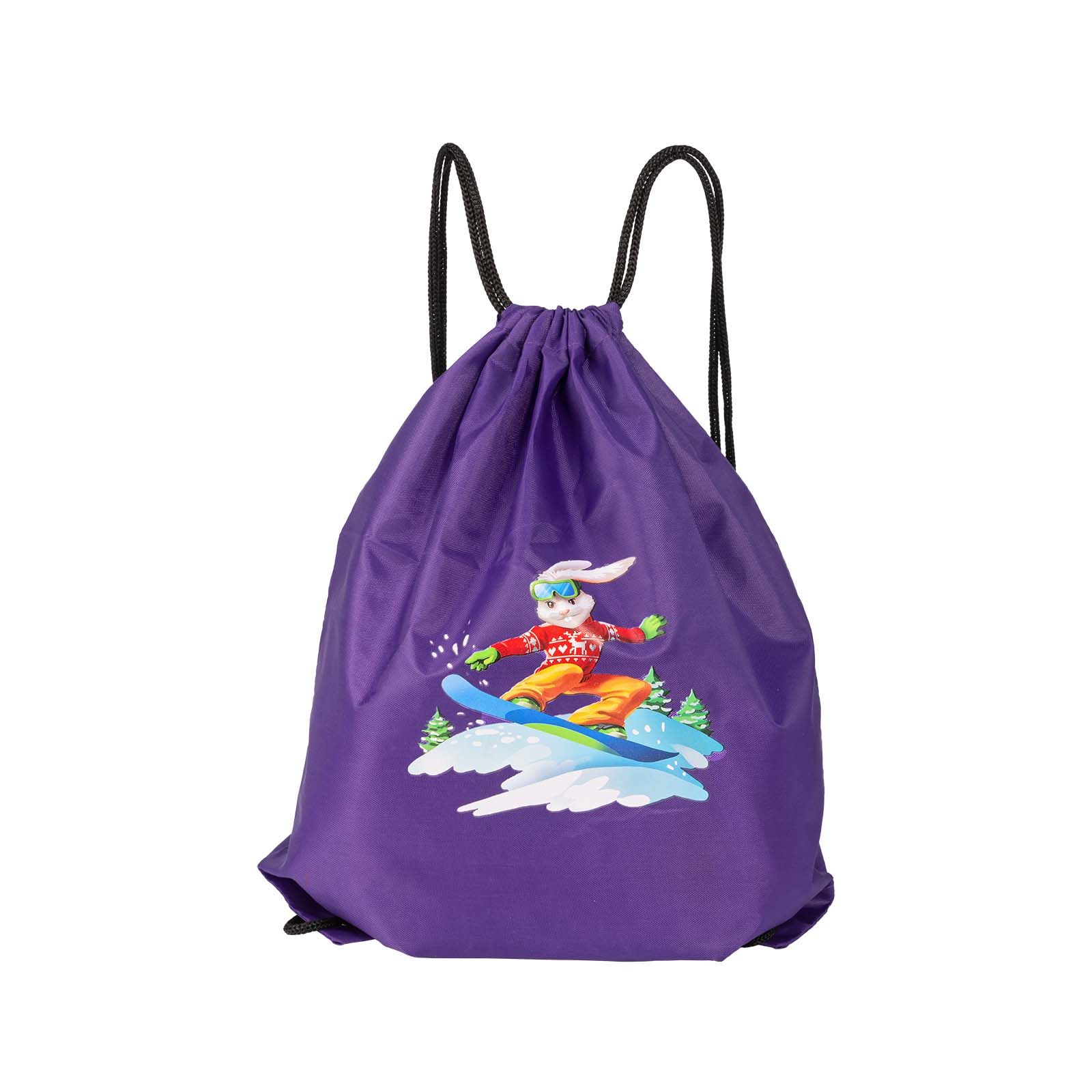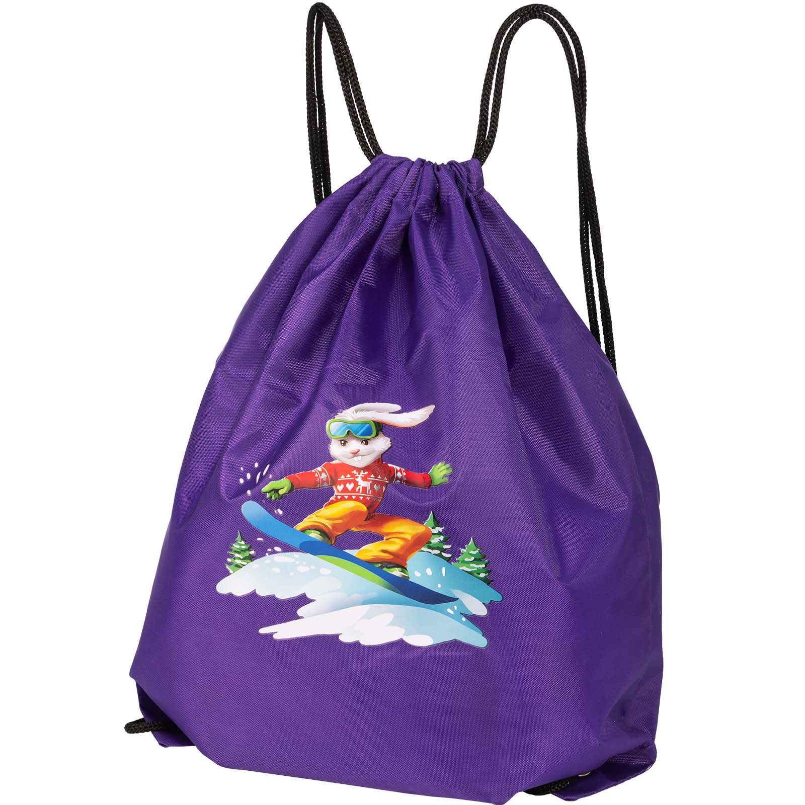 Упаковка  «Мешка для обуви кролика» - это тканевый мешочек, в котором в дальнейшем можно переносить сменную обувь. Он имеет удобную веревочку, плотно закрывающую сумку и защищающую обувь от попадания снега. На мешке изображен отважный, ушастый сноубордист. Фиолетовый цвет универсален, и это делает презент подходящим для мальчиков и девочек. Внутри находится вкусное наполнение из самых свежих сладостей, весом 1000 грамм. Прекрасный выбор, если вы в поиске практичного и яркого подарка.