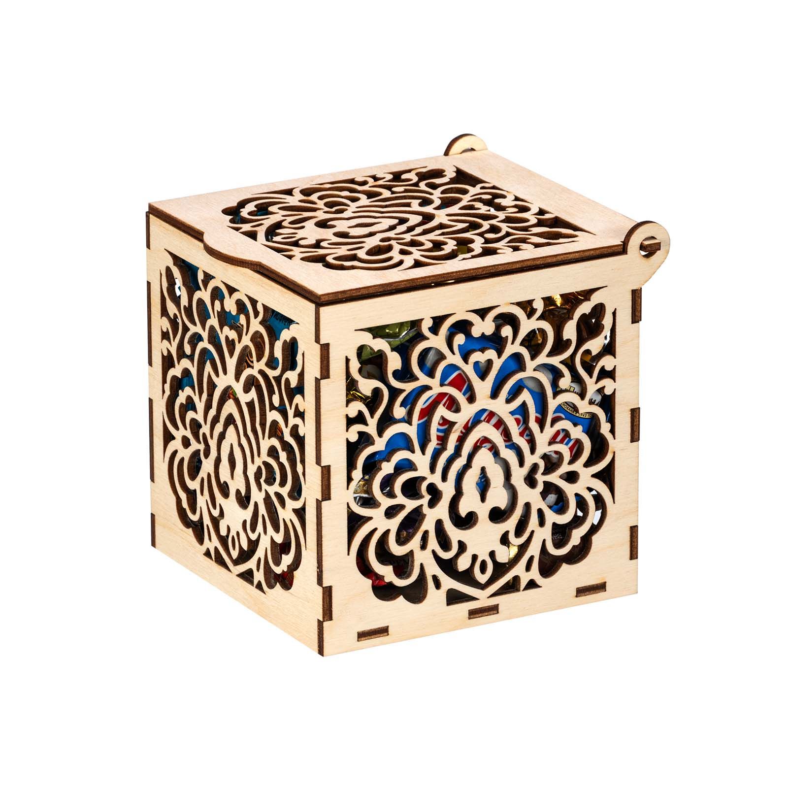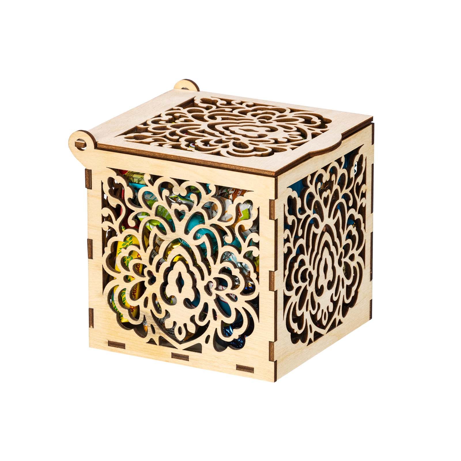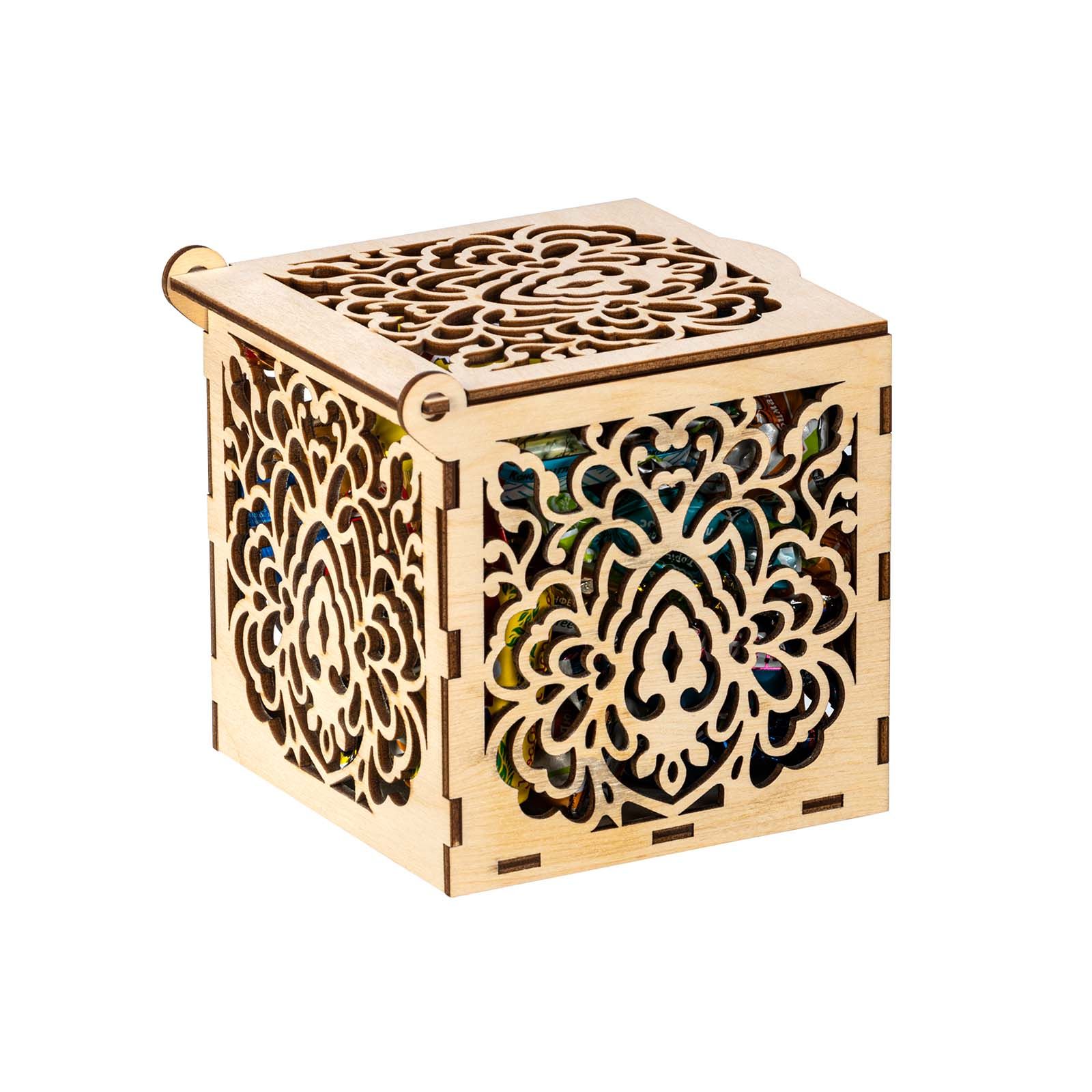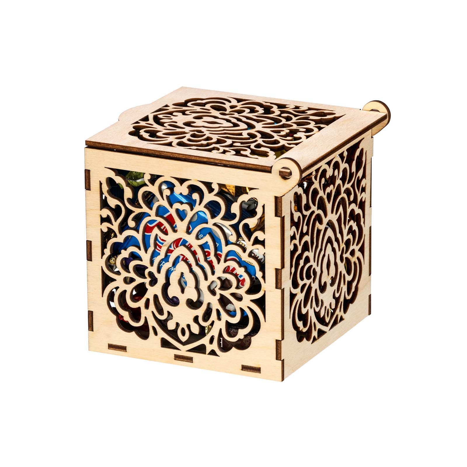 Подробнее о доставкеЕсли вы хотите красиво поздравить с Новым годом коллегу по работе, партнера или любимую подругу, то обращаем ваше внимание на элегантный презент «Морозные кружева». Это деревянная шкатулка с резными узорами на каждой из граней. Короб не покрыт краской, поэтому при желании можно раскрасить его по своему вкусу, проявив тем самым свои творческие способности. Упаковка практична тем, что ее можно использовать как предмет интерьера, конфетницу, для хранения мелочей. Сладости весом 400 граммов расположены внутри. Только самые свежие и вкусные кондитерские изделия: шоколадные конфеты, печенье, десерты, вафли и многое другое. Обязательно найдите минутку насладиться сладким мгновением за чашечкой ароматного кофе и крепкого чая.