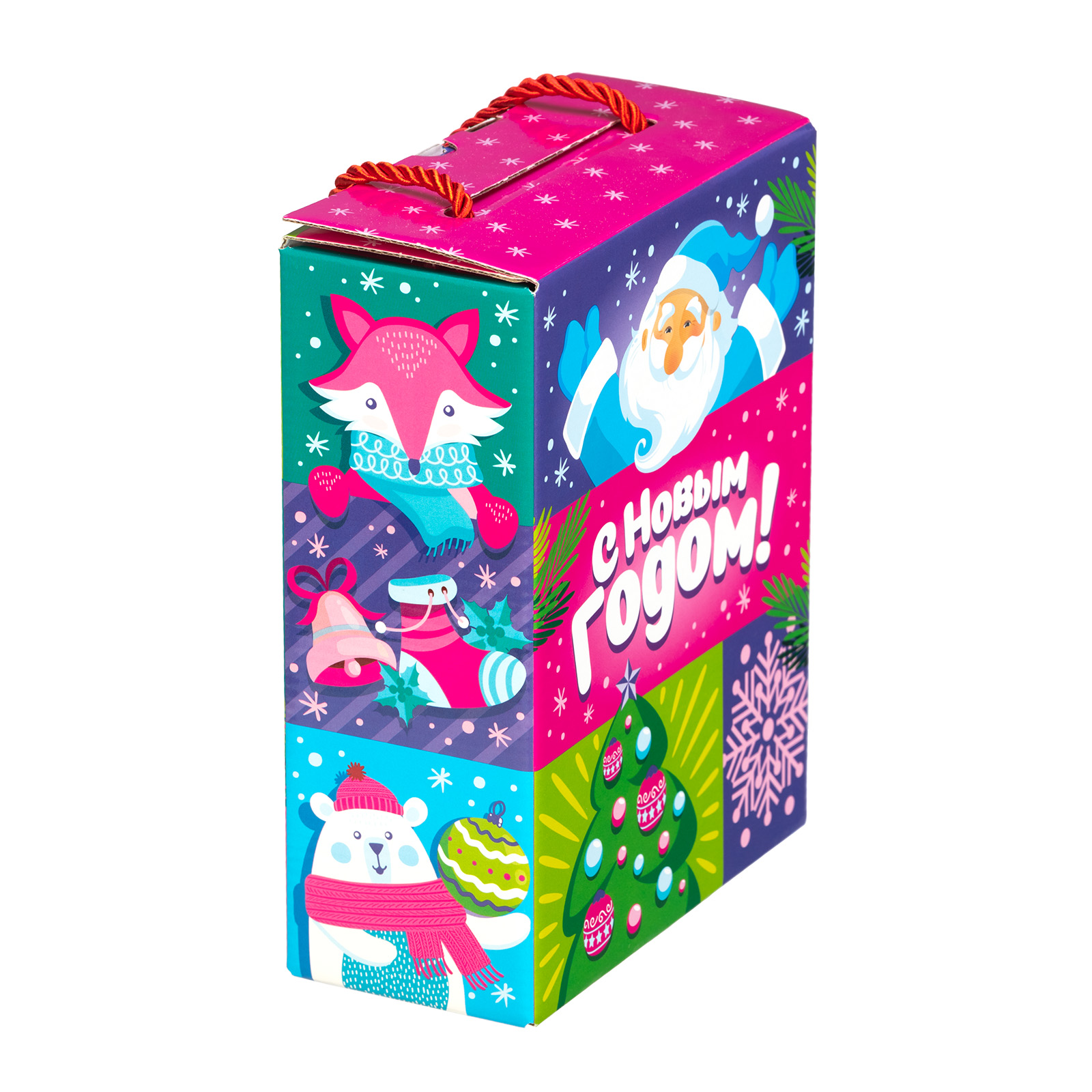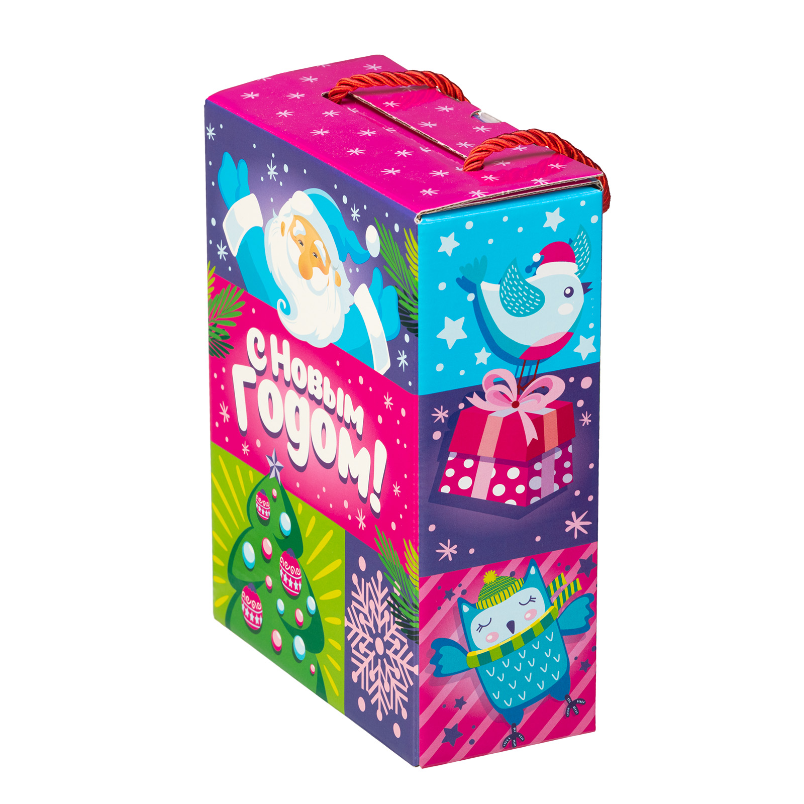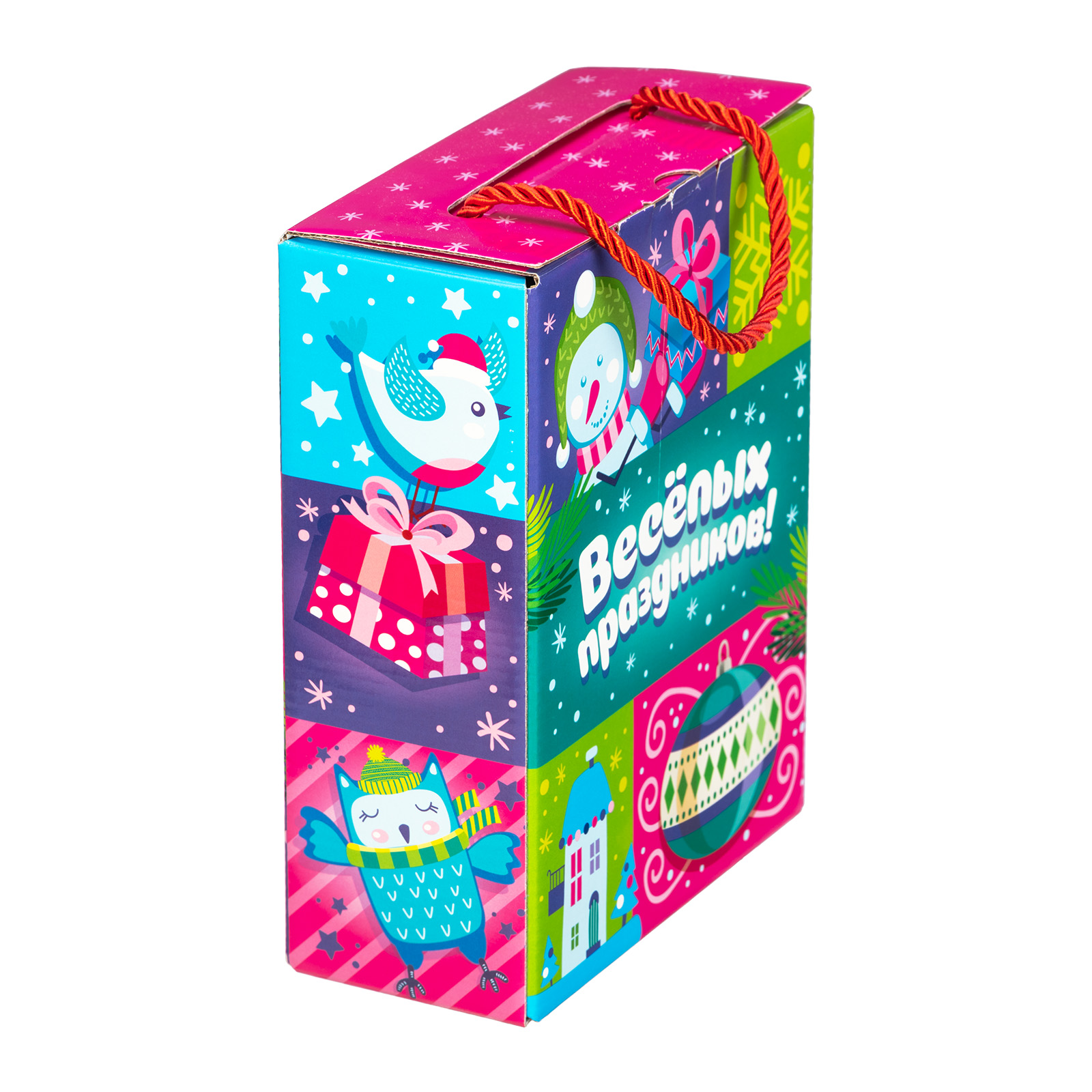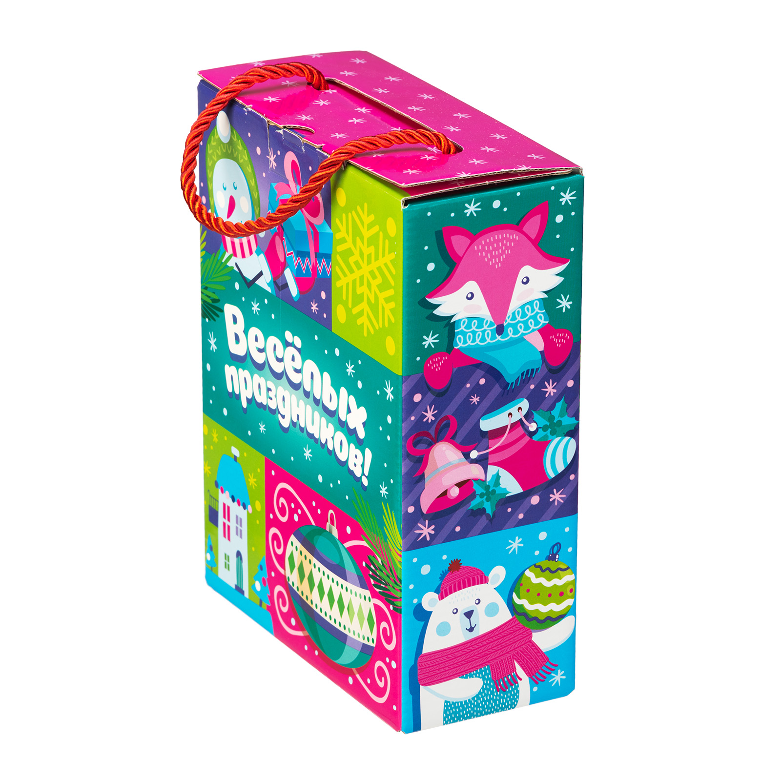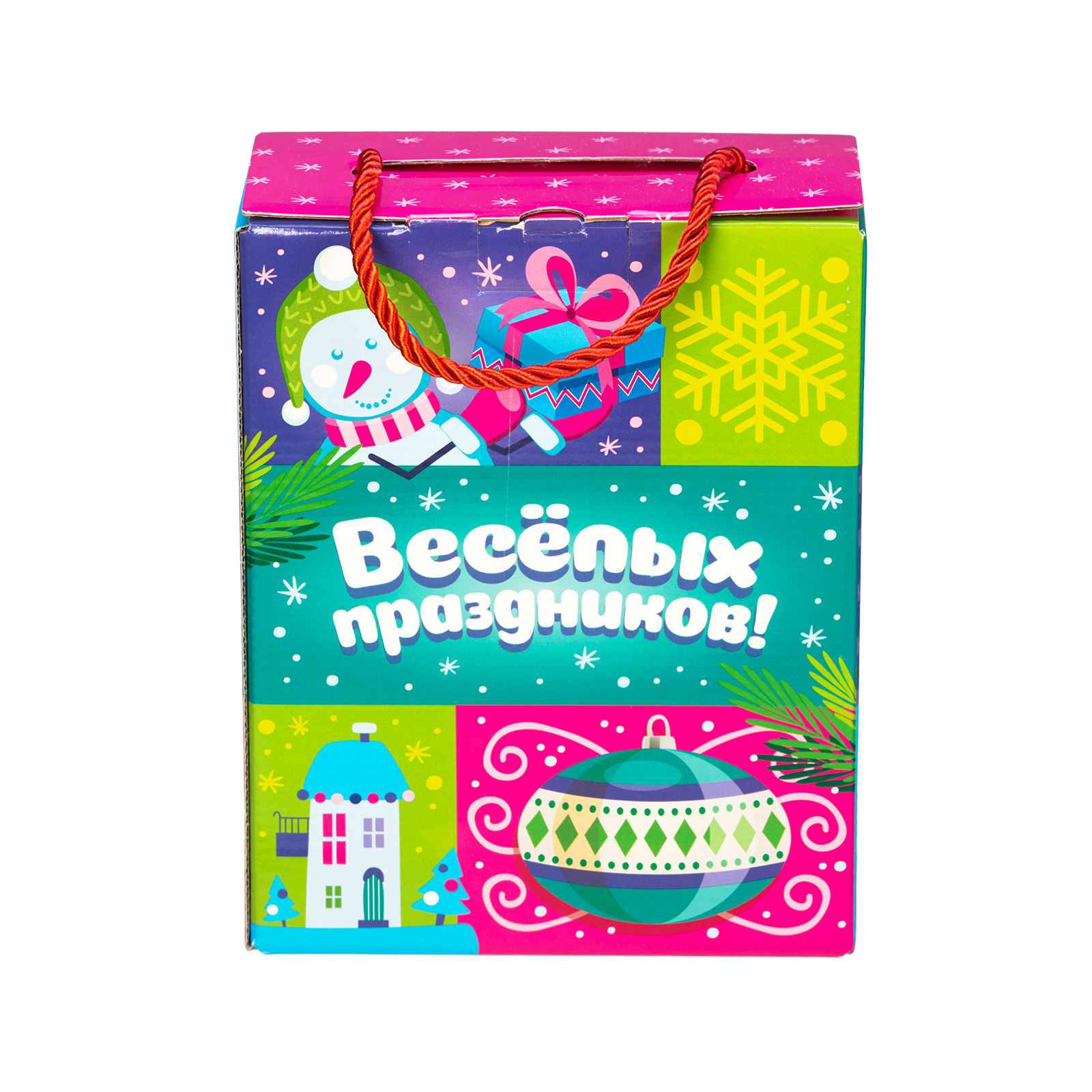 “Новогодняя вечеринка” - пример новогоднего сладкого подарка, который одинаково хорошо подойдет как для ребенка, так и для совсем взрослого сластены. В нем прекрасно все: и упаковка, и содержимое! В состав подарка входит 500 грамм отборных сладостей от ведущих кондитерских компаний и небольшой памятный сувенир, который надолго сохранит в себе все волшебство предстоящих новогодних праздников. Сладости бережно упакованы в яркую картонную сумочку, пышно украшенную новогодними рисунками. На упаковке можно увидеть снежинки, красавицу-елку, лесных птичек и самого главного новогоднего волшебника - веселого Дедушку Мороза!