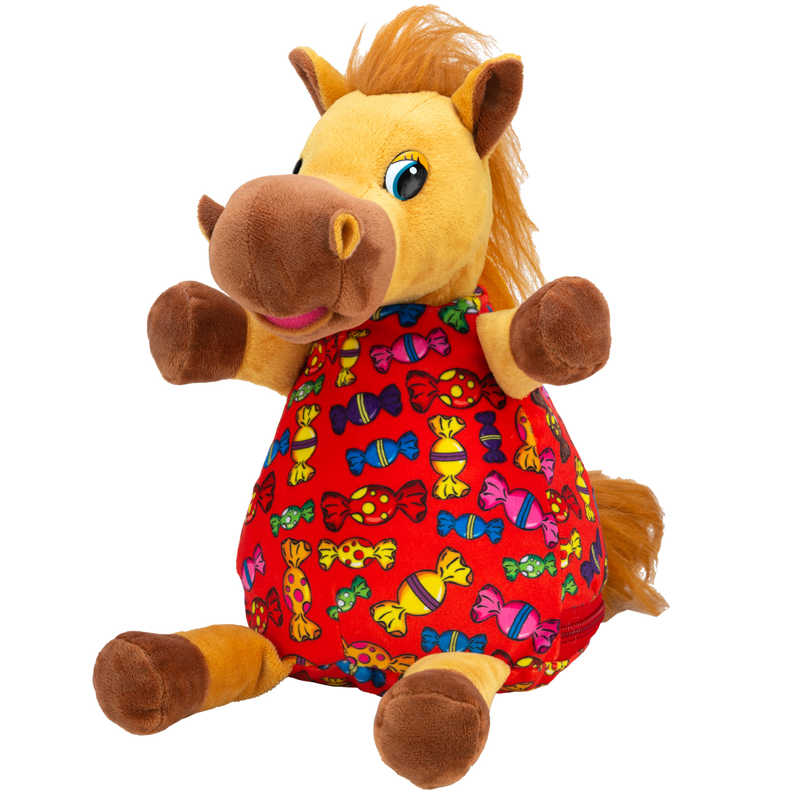 Новогодние сладкие подарки в форме мягких игрушек уже не первый год являются хитом продаж. - ведь такой подарок гарантированно вызывает восторг у маленьких сластен. Набор “Озорник Егорка” как раз относится к числу таких подарков. Это мягкая набивная игрушка в виде задорного огненно-рыжего жеребенка в забавной красной маечке, на которой изображены конфеты в разноцветных фантиках - ведь больше всего на свете Егорка любит именно сладости. К своему новому другу жеребенок пришел не с пустыми руками - он приготовил множество вкусных и разнообразных лакомств, с которыми любое вечернее чаепитие легко превратится в роскошное торжество. От такого нового друга малыш точно будет без ума!