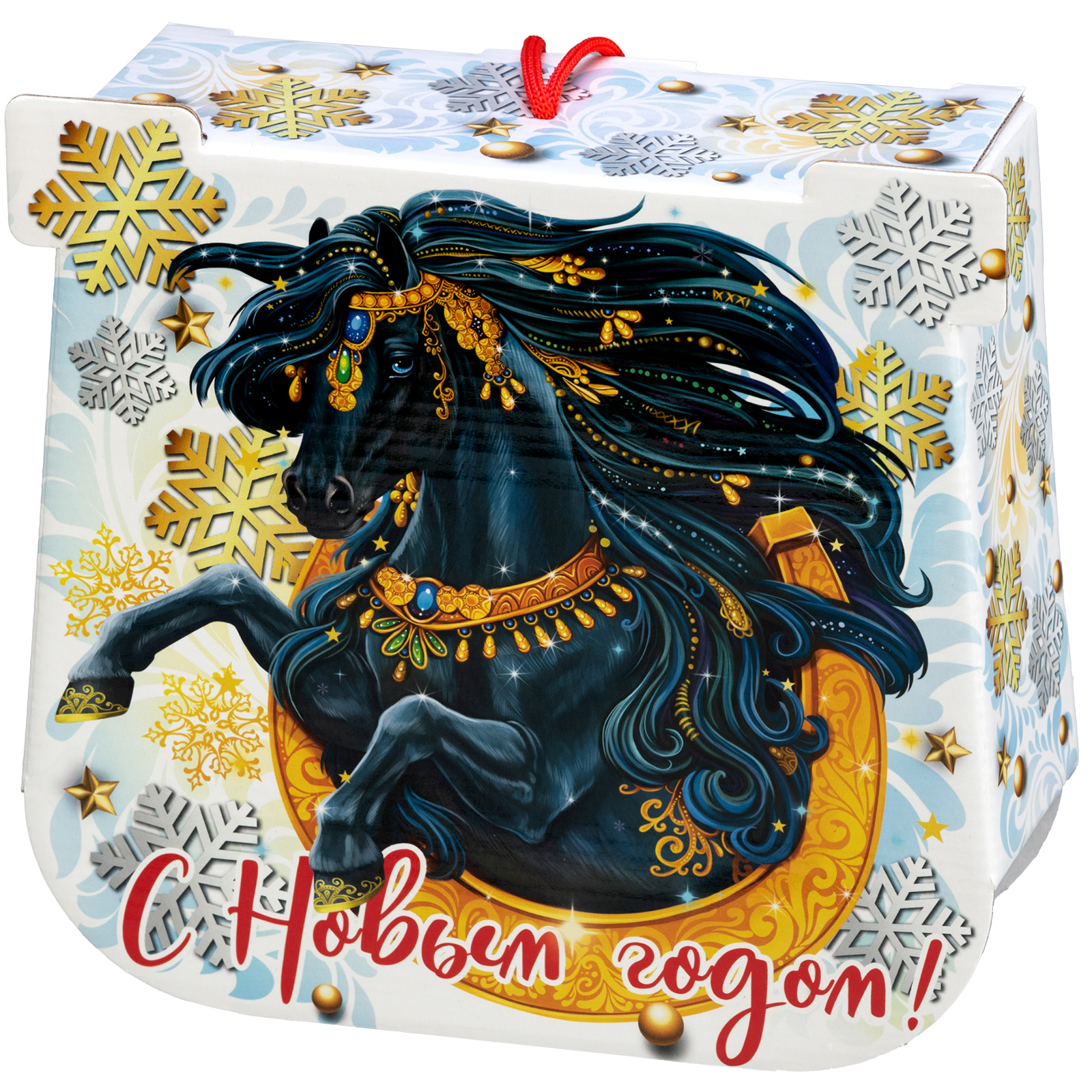 Интересный вариант новогоднего подарка – «Подкова на счастье Легенды Москвы». Он представлен в разделе Картон. Отлично подойдет на подарок в 2026 году с символом Лошадь. Внутри такого презента находится кондитерский набор весом 1000 граммов.