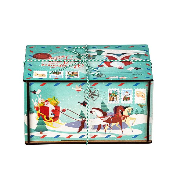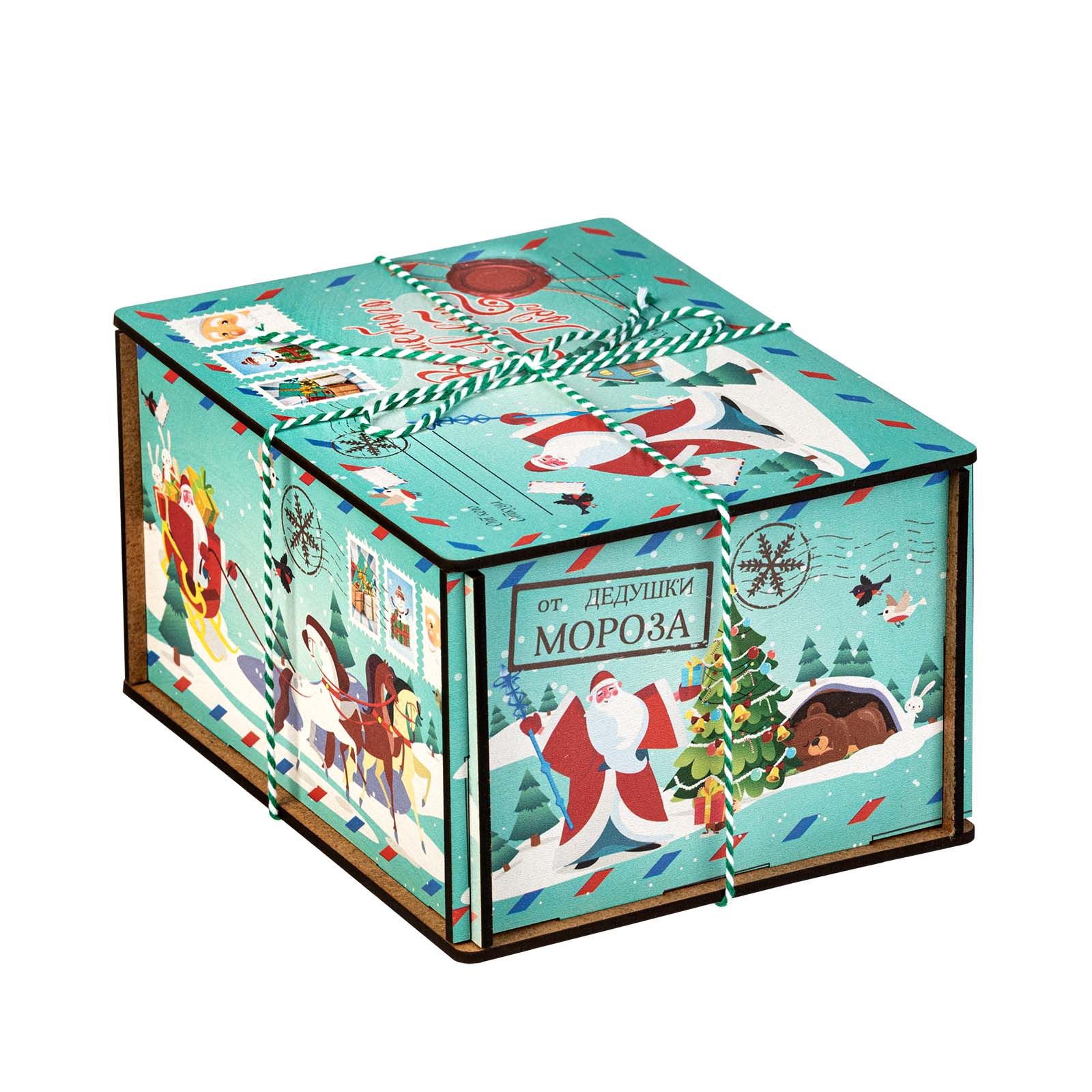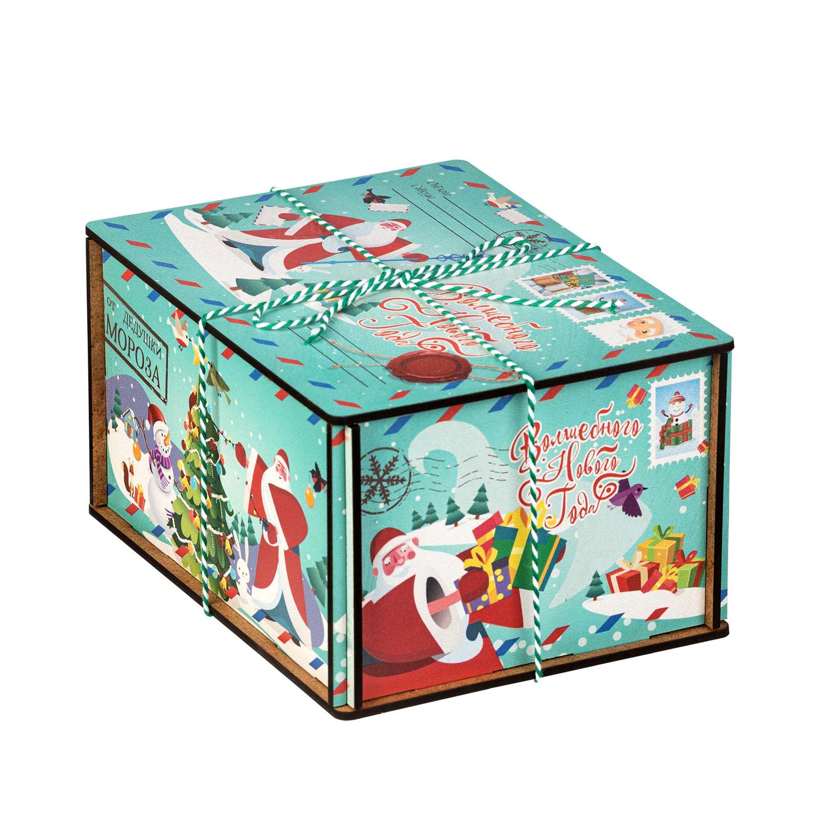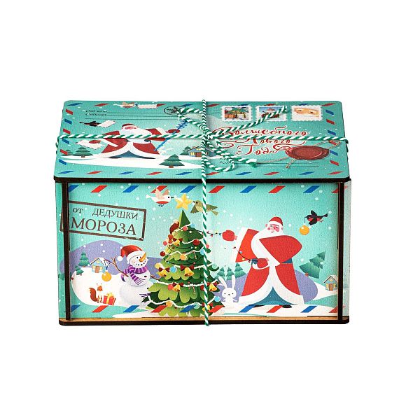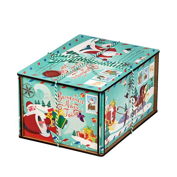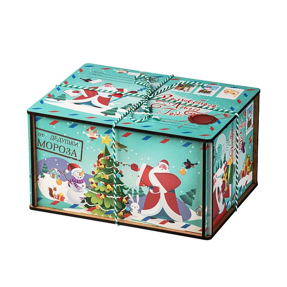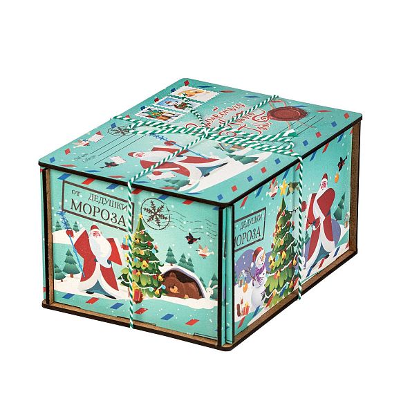 Подробнее о доставкеЯркий красочный подарок в деревянном коробе «Посылка Бирюзовая» непременно понравится вам и вашему ребенку. Цветовая гамма цвет морской воды. На рисунке Дед Мороз. По контуру декоры с почтовой символикой. На строках надписи от кого и для кого. Размер упаковки 18*10*13 сантиметров. За счет универсального сюжета на упаковке данный подарок можно подарить как ребенку, так и взрослому. Сладкий набор весом 1500 граммов непременно порадует ваших любимых сладкоежек.Подарок имеет сертификат качества, с которым вы можете ознакомиться на нашем сайте. Этот и другие варианты посылок смотрите в разделе дерево.