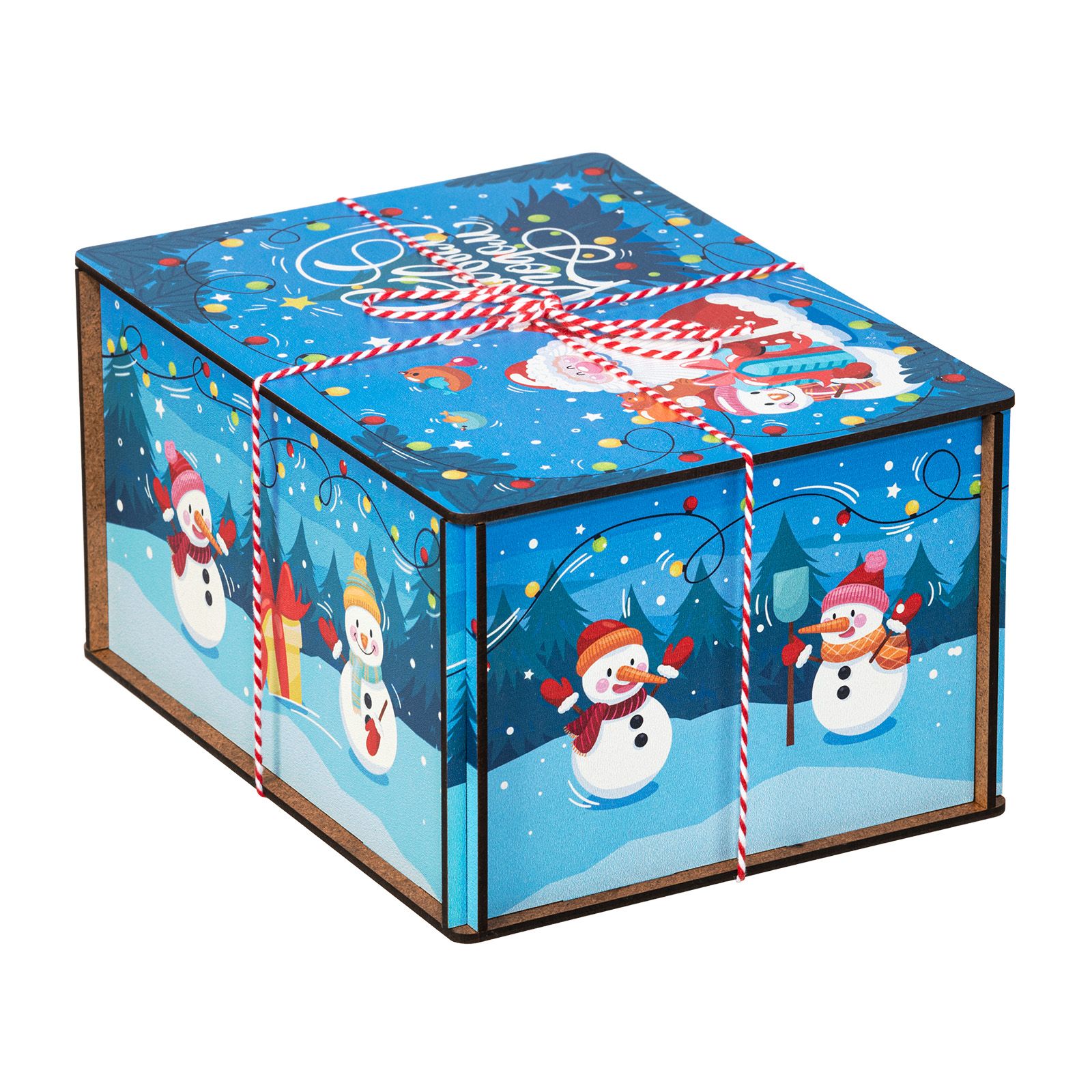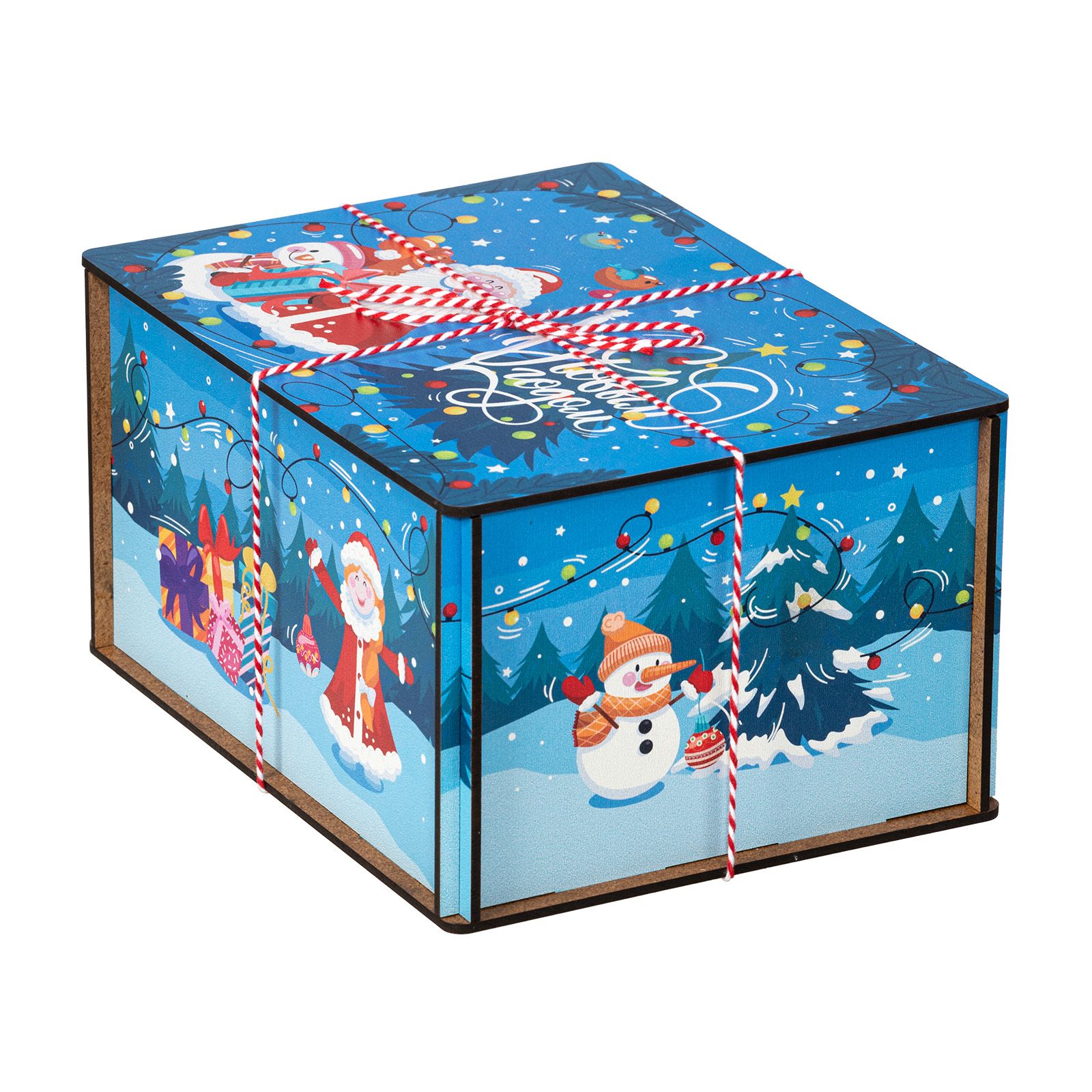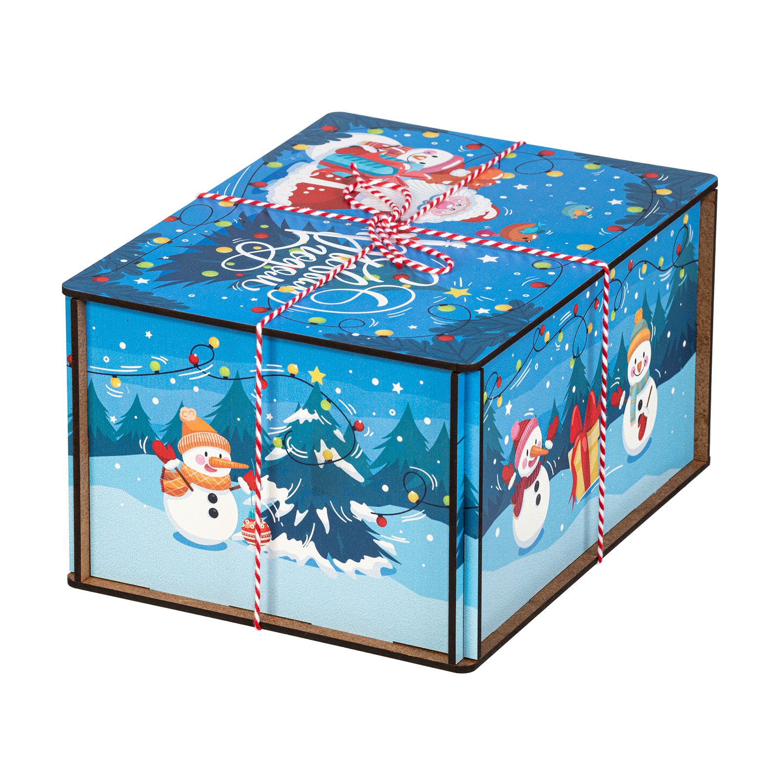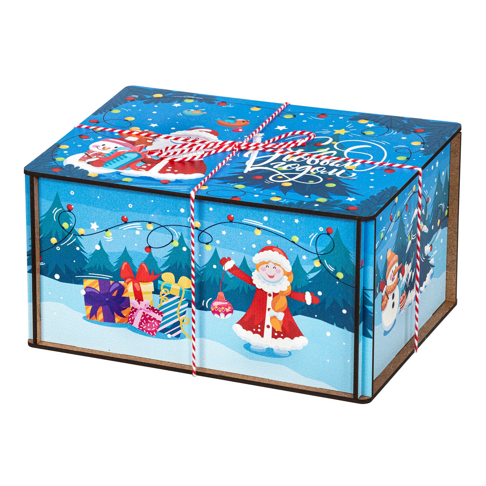 Если вы хотите подобрать интересный подарок для детей, то рекомендуем обратить внимание на презент «Посылка Гирлянды». Данный вариант представлен в упаковке из дерева. Размер короба 21*11*16 сантиметров. Общая цветовая гамма синяя. На рисунке Дедушка Мороз и Снеговичок как главные персонажи праздника. По краям декор их ветвей елок. Сладкое содержимое весом 1000 граммов пестрит разнообразием вкусов и ароматов. В составе есть шоколадные конфеты от легендарных фабрик, новинки от региональных, вкуснейшие десерты, печенье, вафли и многое другое. Отличное сочетание цены, веса и состава.