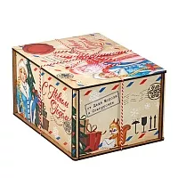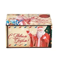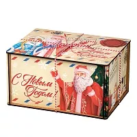 Интересный вариант новогоднего подарка – «Посылка из Устюга (Полезный состав)». Он представлен в разделе Дерево. Отлично подойдет на подарок в 2026 году с символом Лошадь. Внутри такого презента находится кондитерский набор весом 1000 граммов.