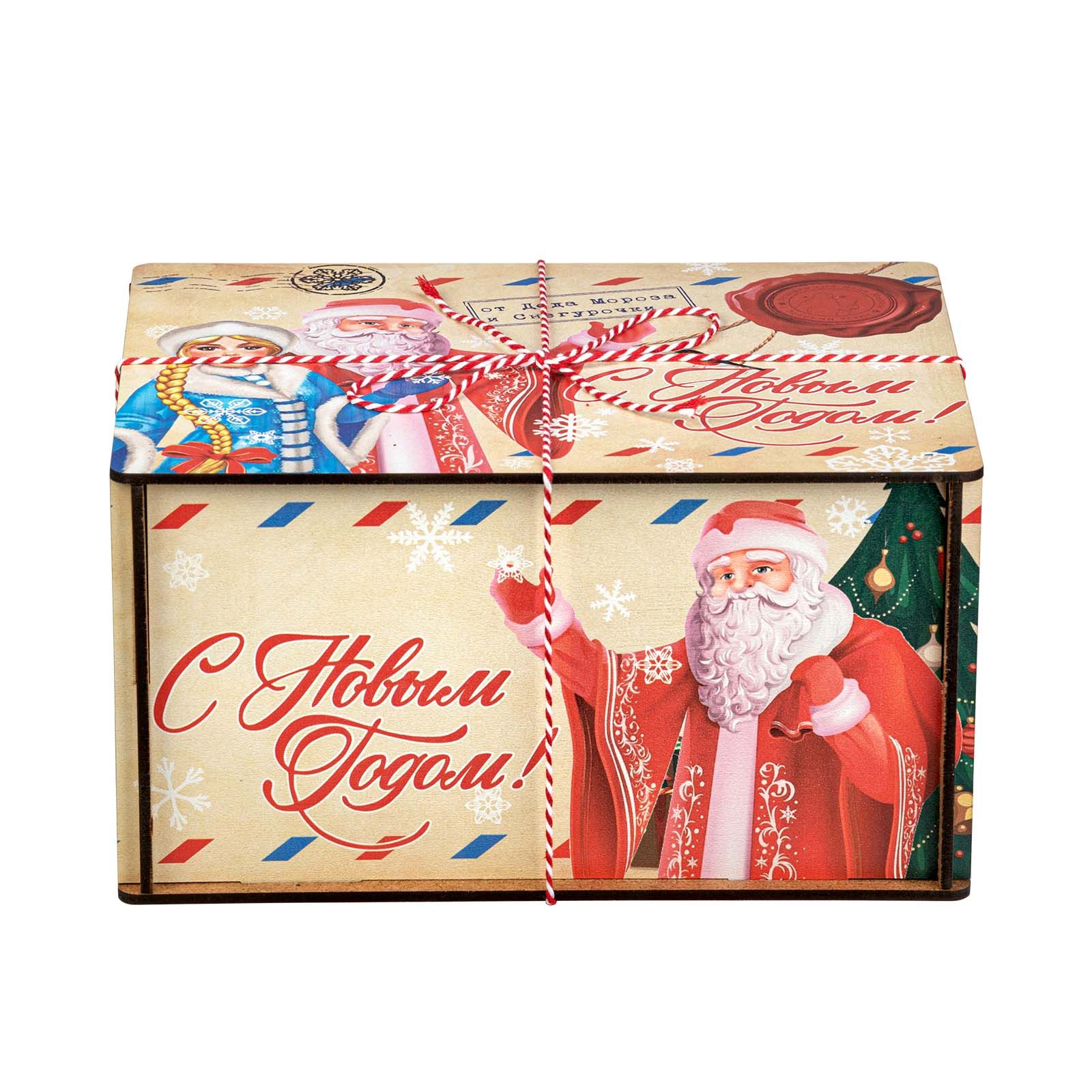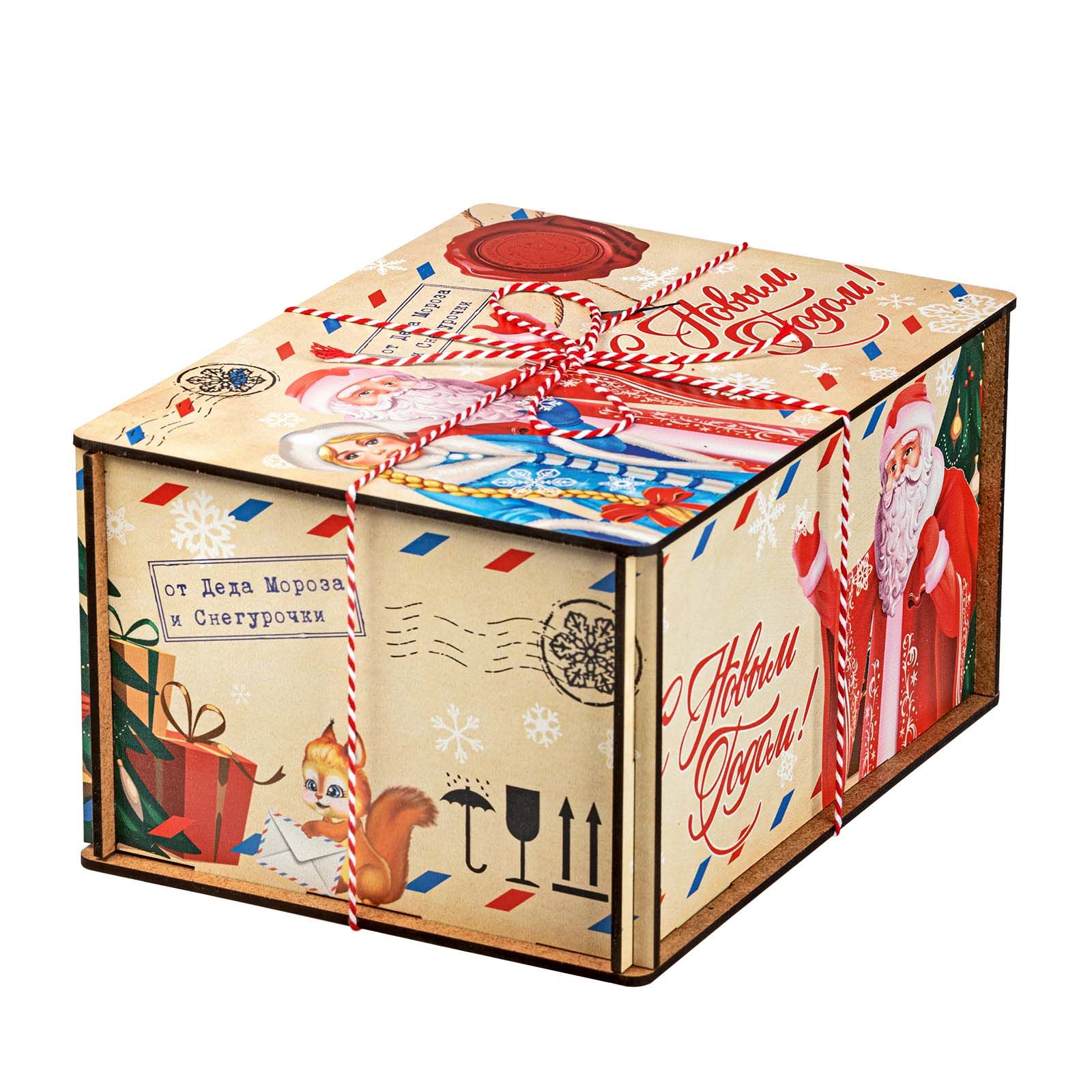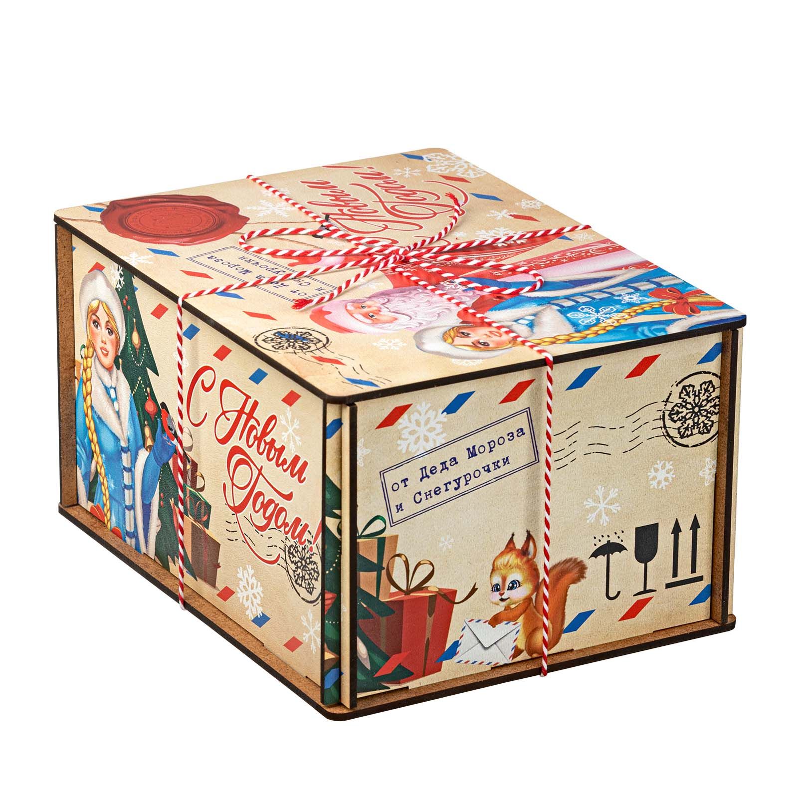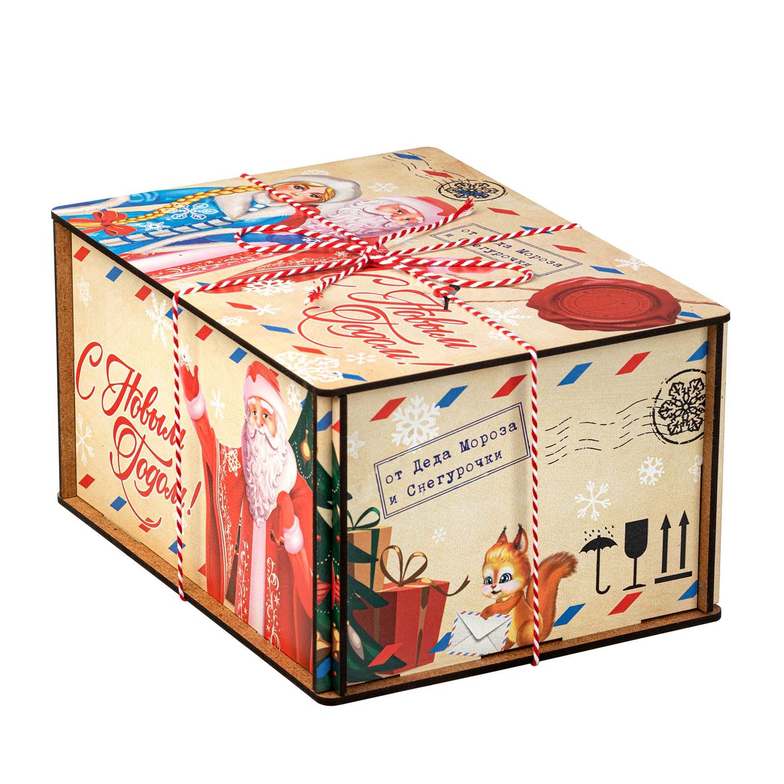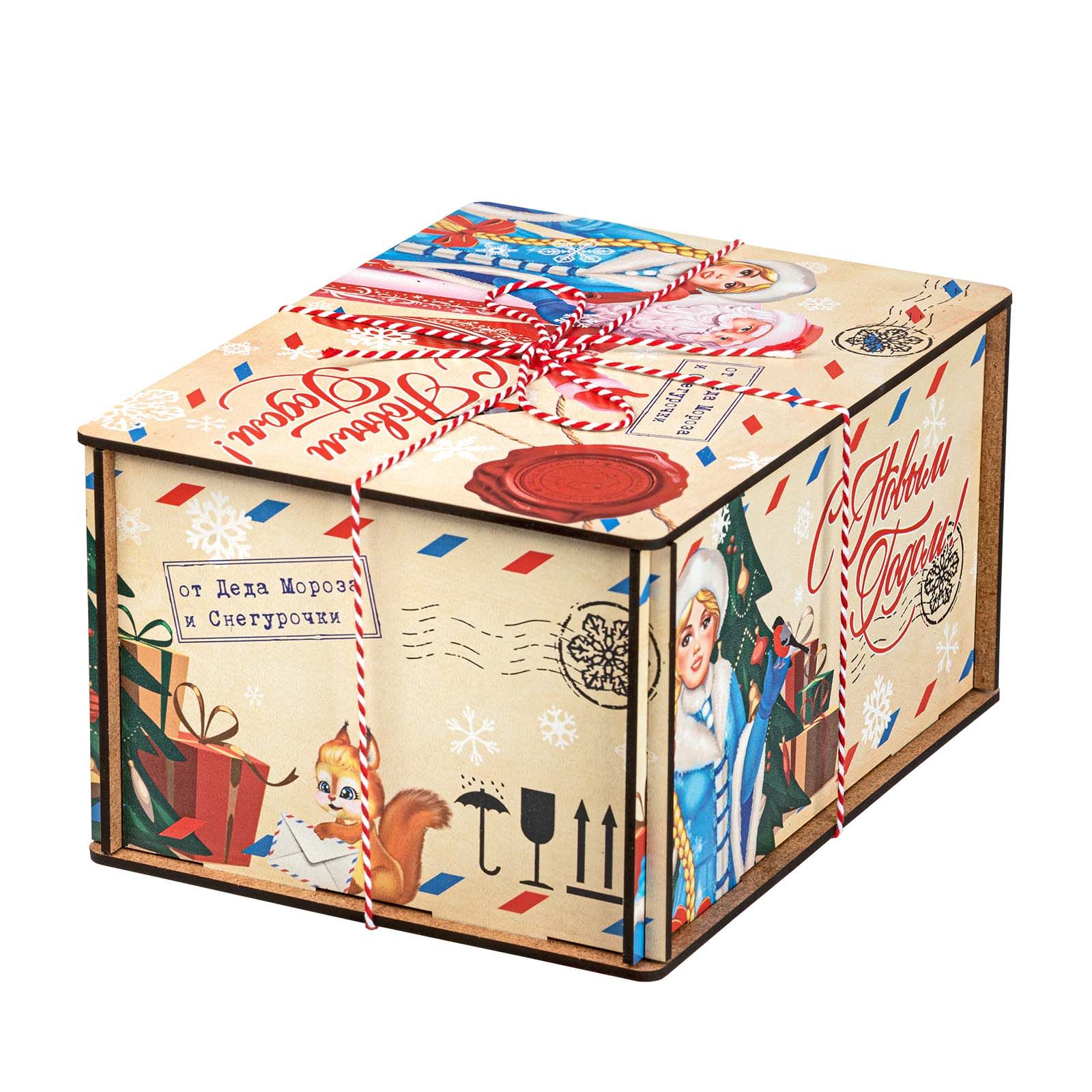 Из года в год огромной популярностью пользуются подарки с почтовой новогодней символикой. Подарок «Посылка из Устюга» представлена в разделе дерево. По форме это посылка. Сверху короб перевязан веревкой. Цветовая гамма светло-бежевая. На рисунке изображены Дед Мороз и Снегурочка. Они приветствуют всех гостей на празднике. Кондитерский состав весом 1000 граммов порадует отличным сочетанием и разнообразием. Каждый член семьи найдет для себя любимое лакомство к торжественному чаепитию. Данный презент можно подарить как ребенку, там и взрослому. Все подарки имеют декларацию соответствия.