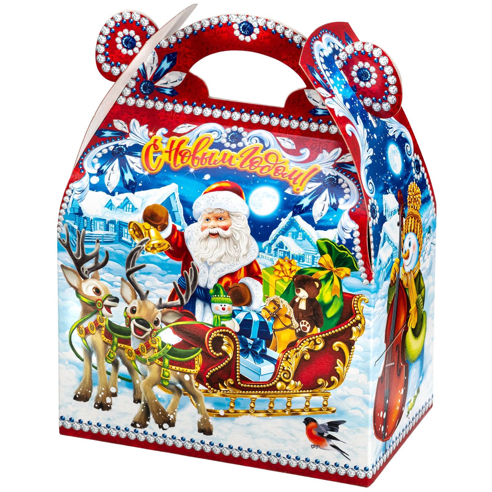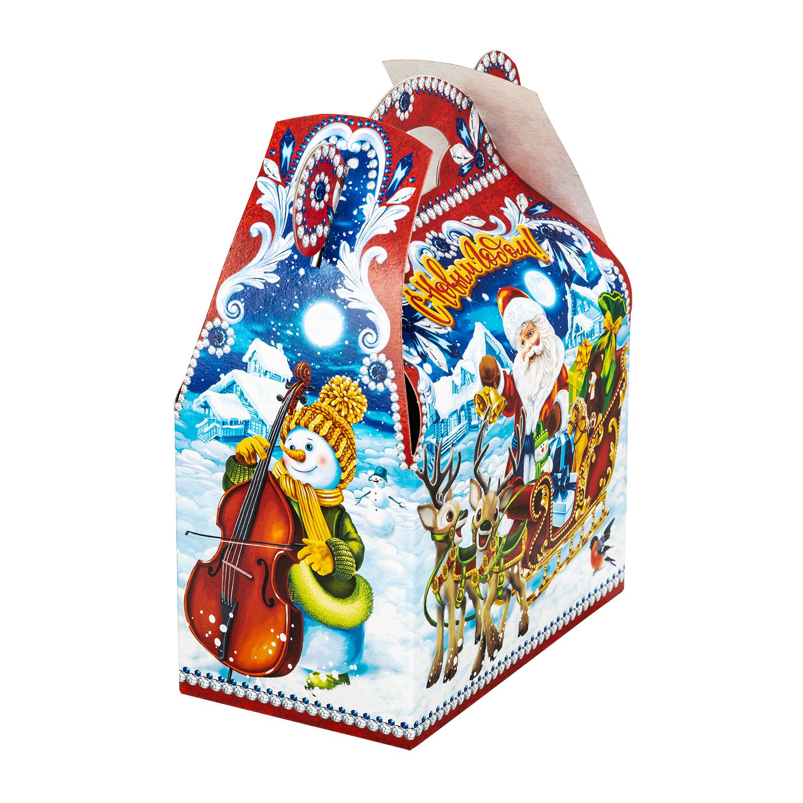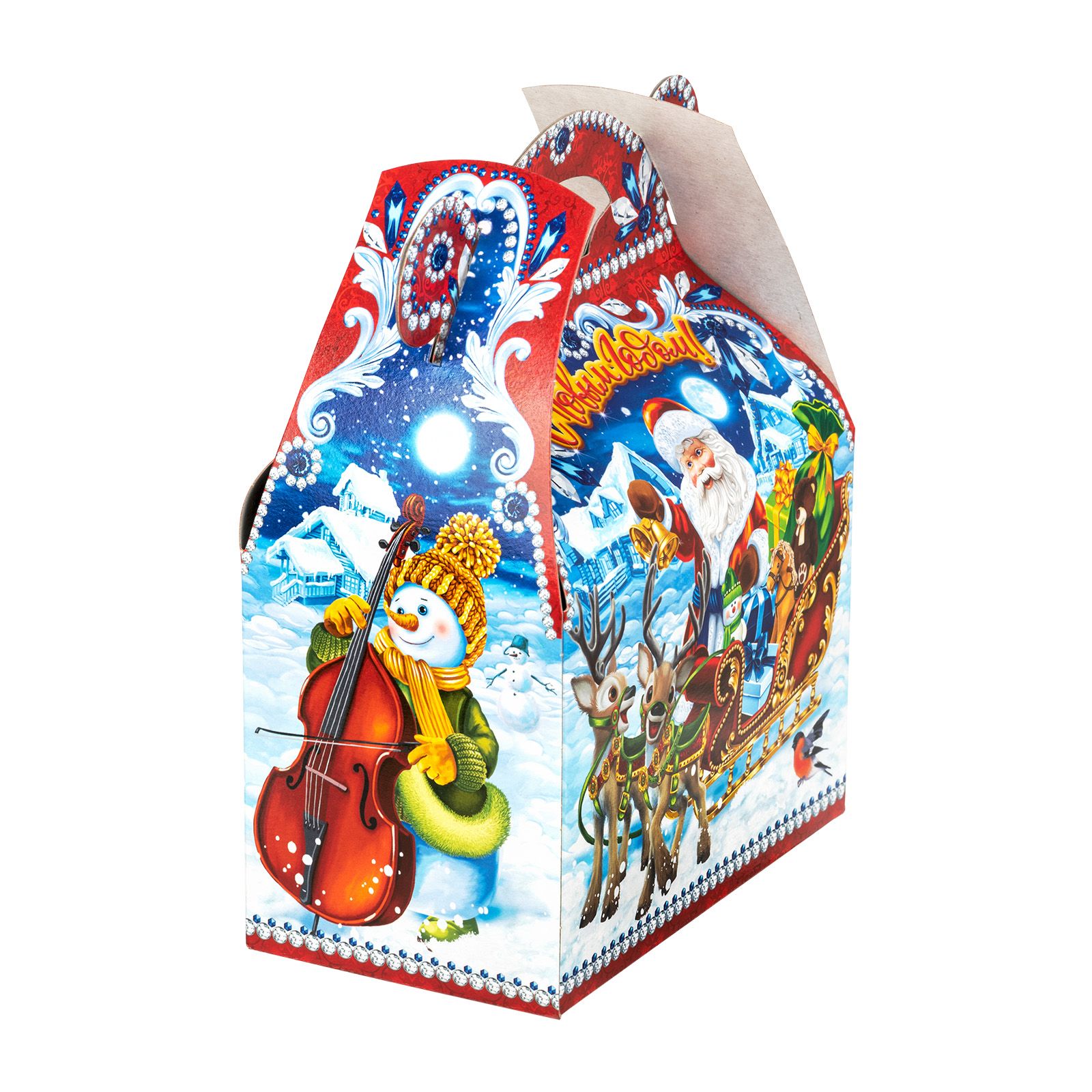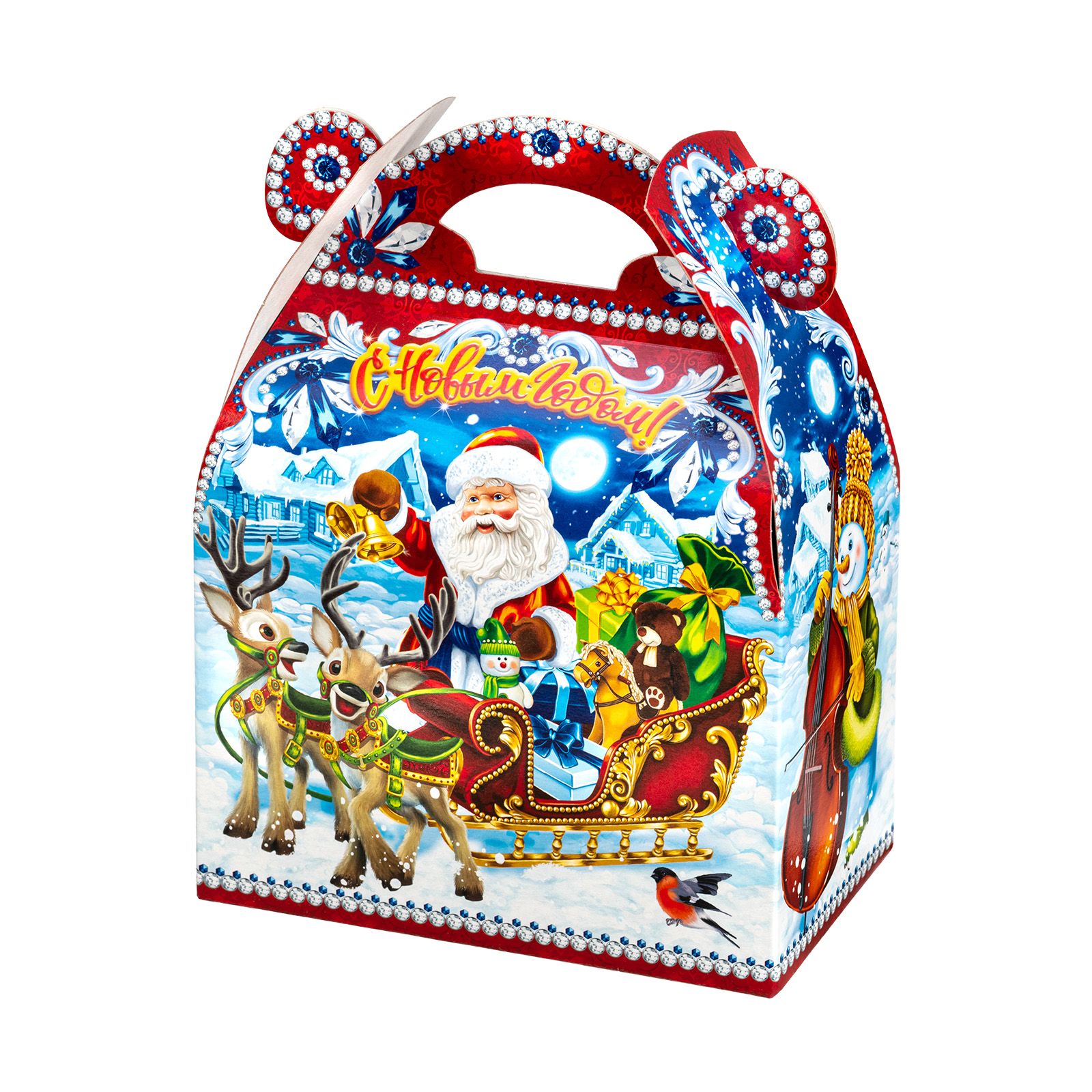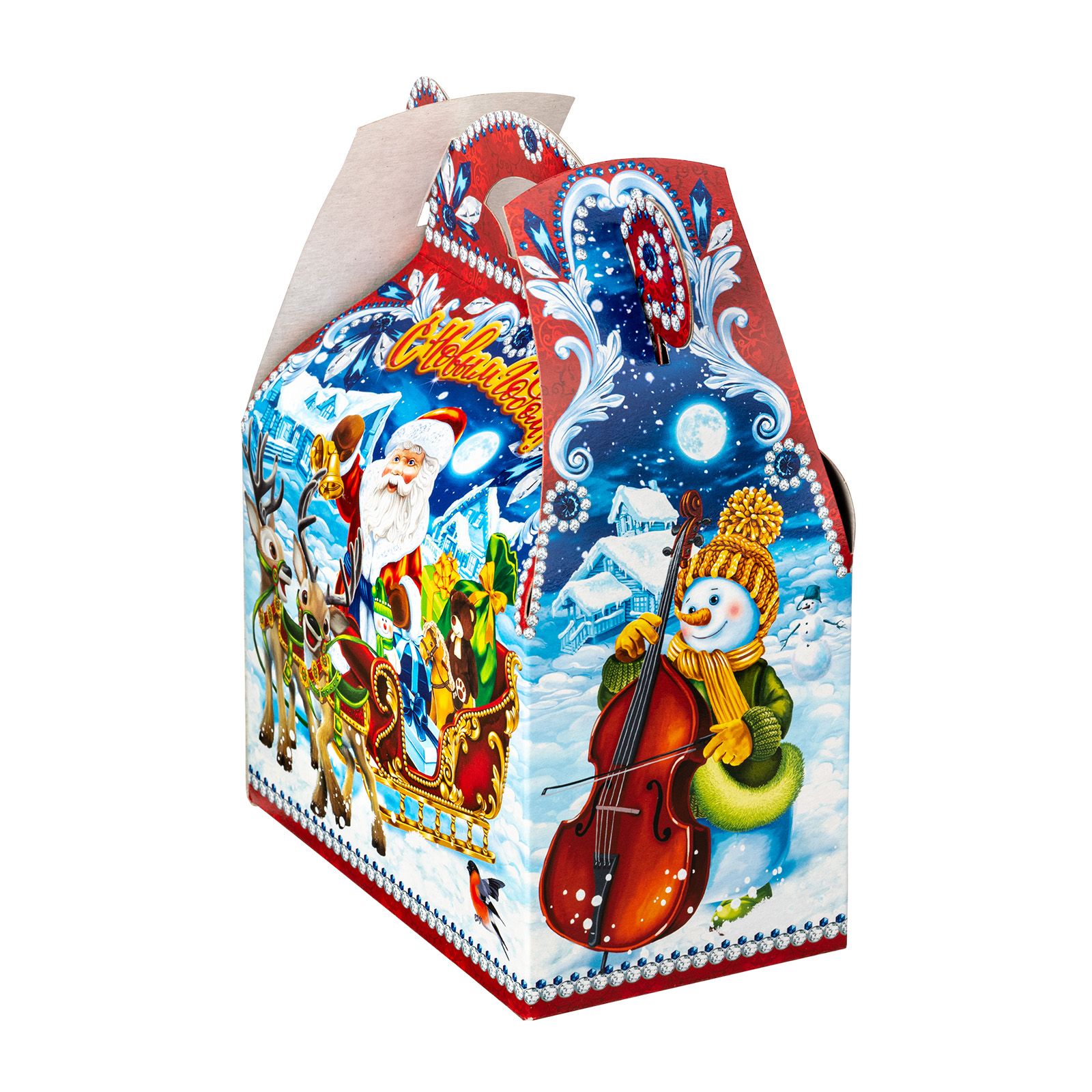 Подробнее о доставкеПопулярный подарок в нашей коллекции сладких новогодних подарков «Саквояж». Это яркая и красочная картонная упаковка в форме сумочки. Сверху имеются прорезные ручки для переноски. Необычный дизайн упаковки привлекает внимание. На оборотах короба изображен Дед Мороз на санях, который готовится развозить подарки, на боковой части Снеговик, который играет на музыкальном инструменте. В кондитерском наборе весом 500 граммов вкусные конфетки с разными начинками, свежайшие десерты, хрустящие печенья и вафли, пирожные. Данный подарок прекрасно подойдет для дарения детишкам младшего и среднего возраста, а также для организаторов новогодних мероприятий. Вся продукция сертифицирована и полностью безопасна.