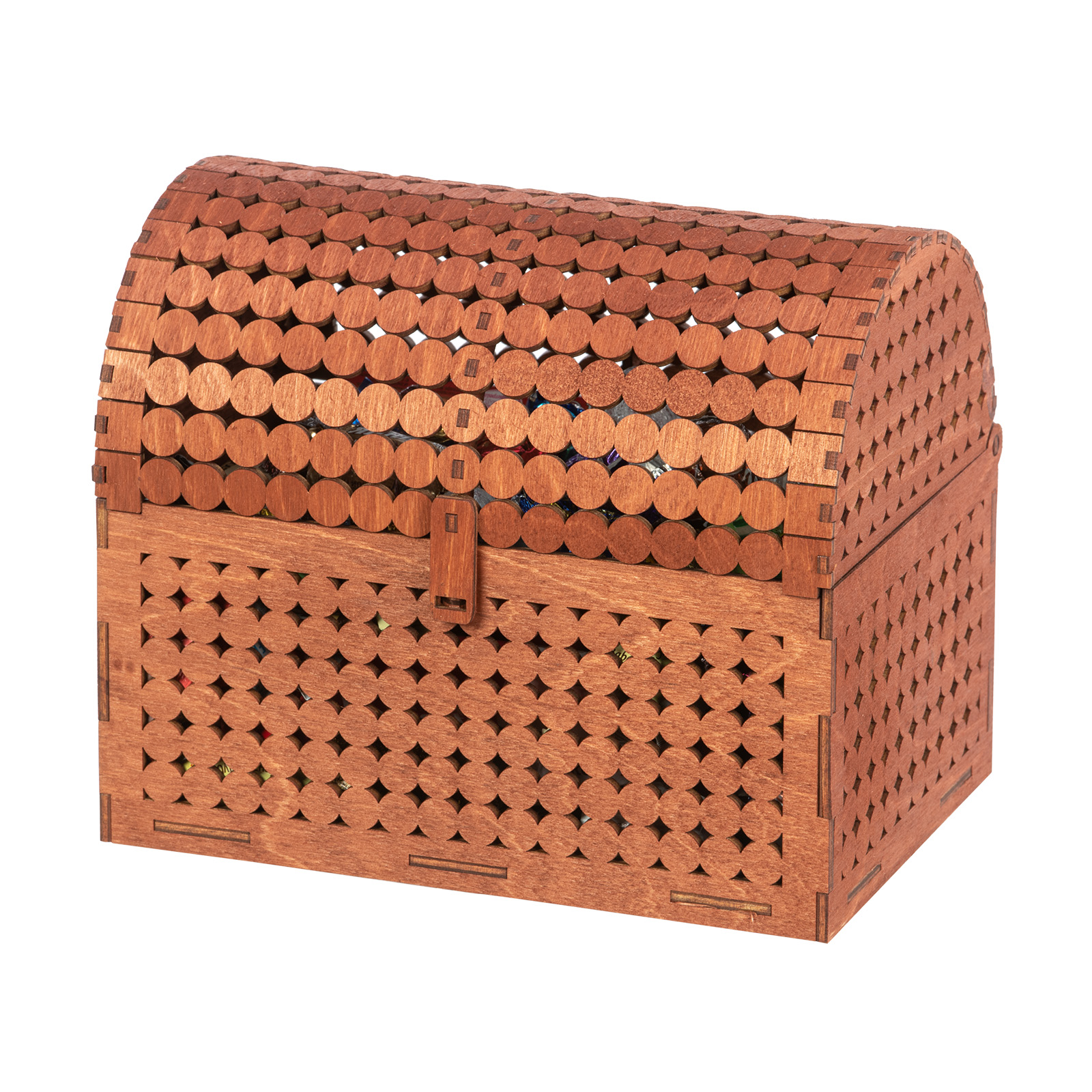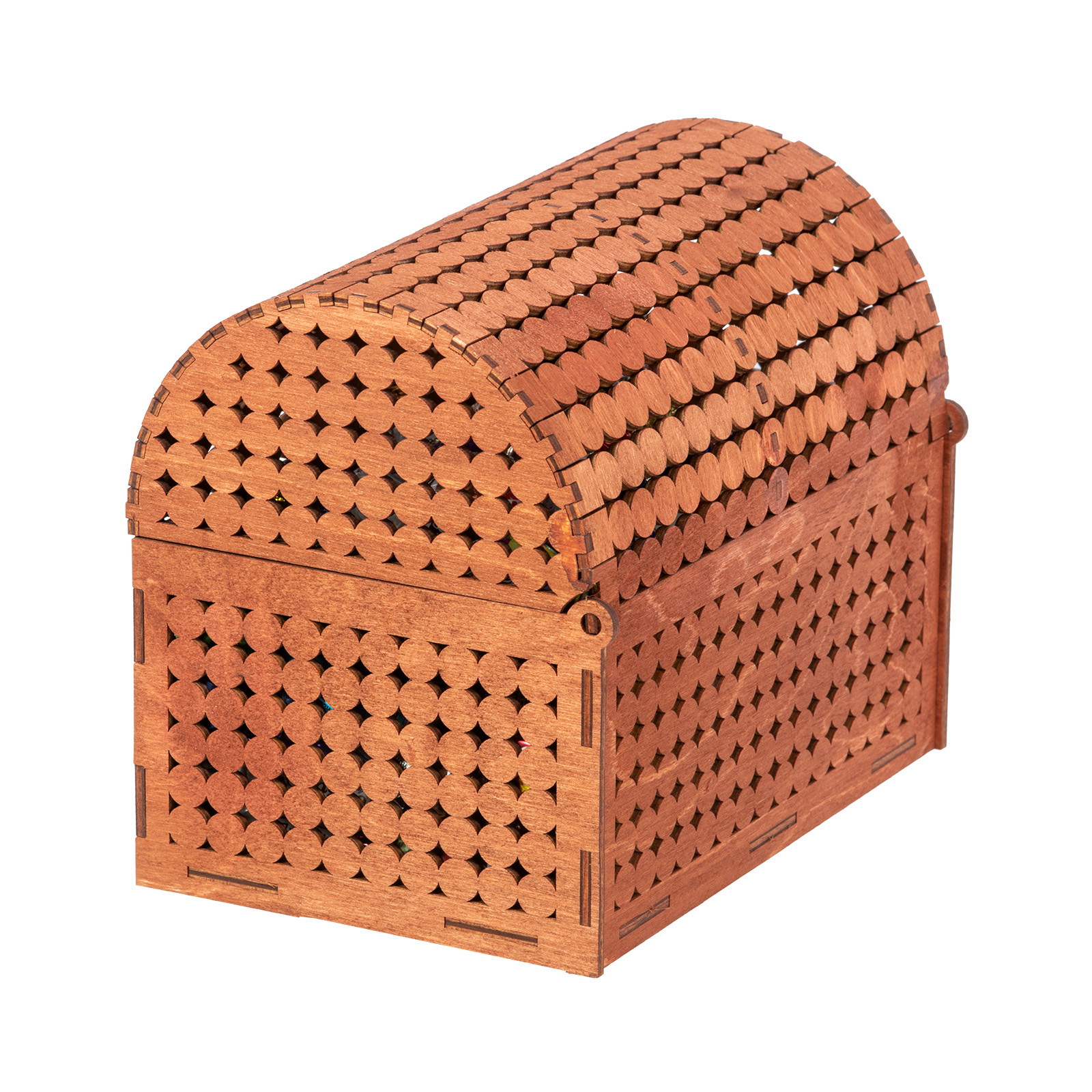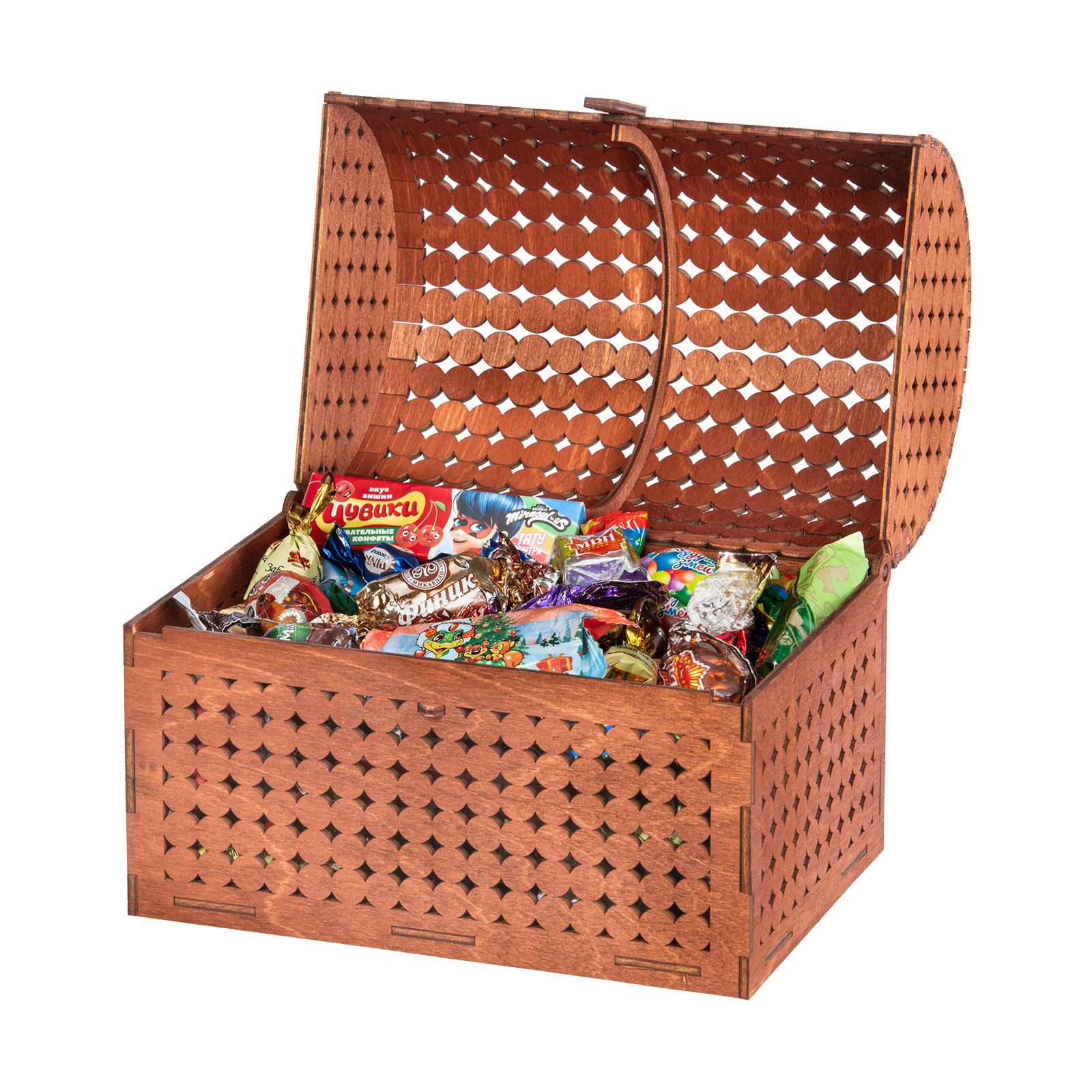 Ищете креативный новогодний сладкий подарок для взрослого? Тогда обратите внимание на набор “Сундук ажурный”. Он идеально сочетает в себе оригинальную подарочную упаковку и разнообразное сладкое наполнение, состоящее из отборных любимых лакомств. Подарочная упаковка выполнена в виде небольшого деревянного сундучка, состоящего из множества креативных резных деталей. В дальнейшем сундучок можно использовать в качестве емкости для хранения, а пока можно поставить чайник и угоститься вкусными сладостями, которые бережно хранятся в этой красивой деревянной коробочке.