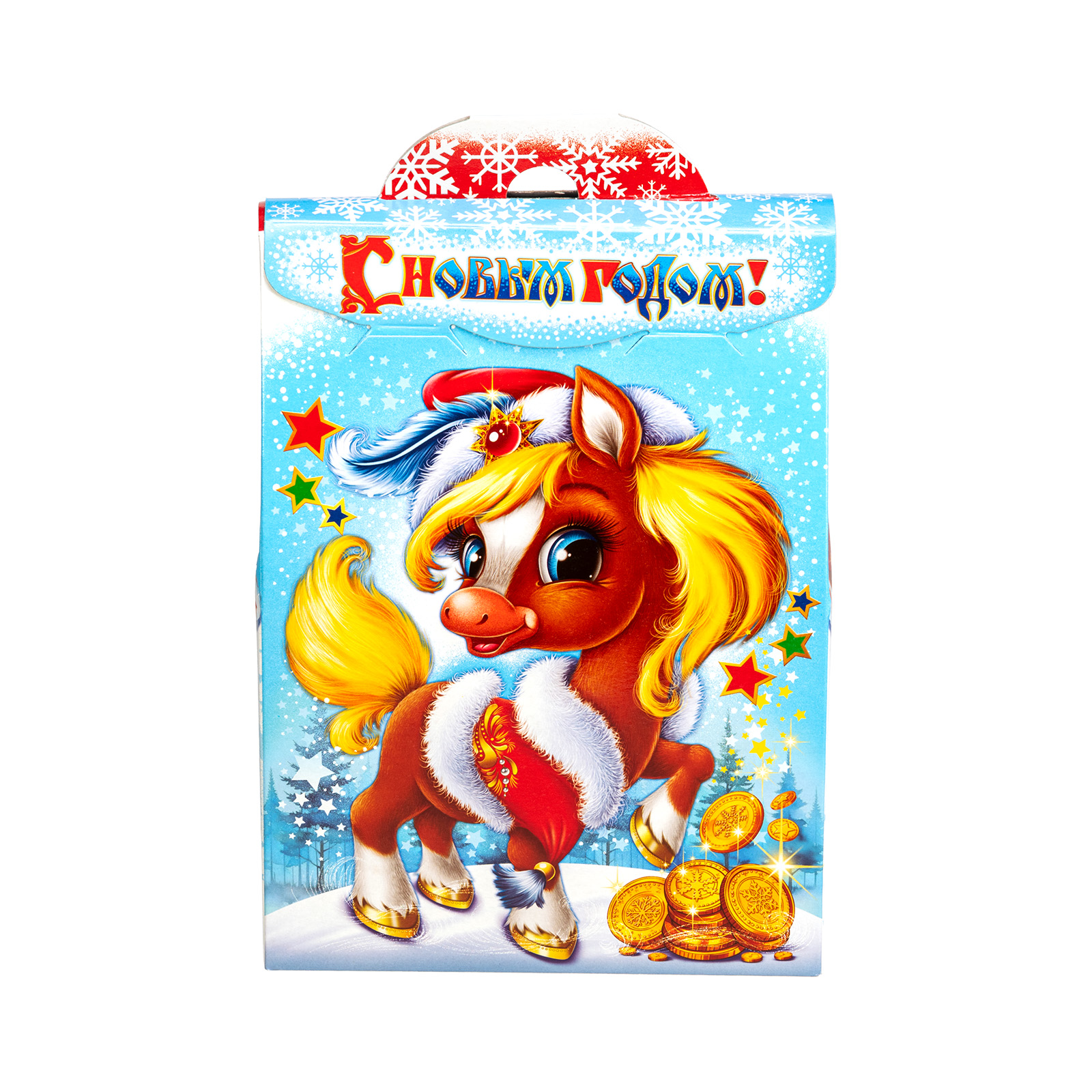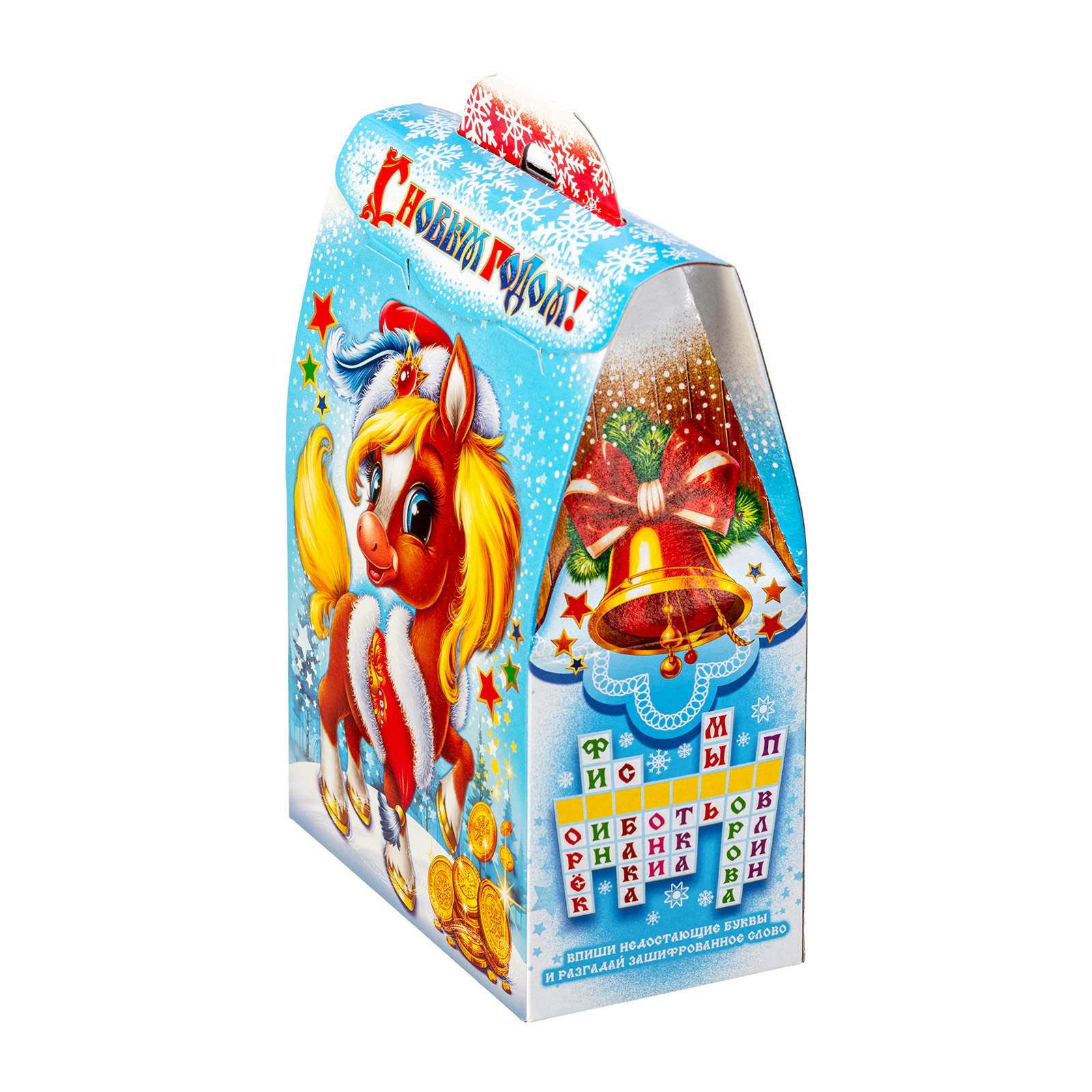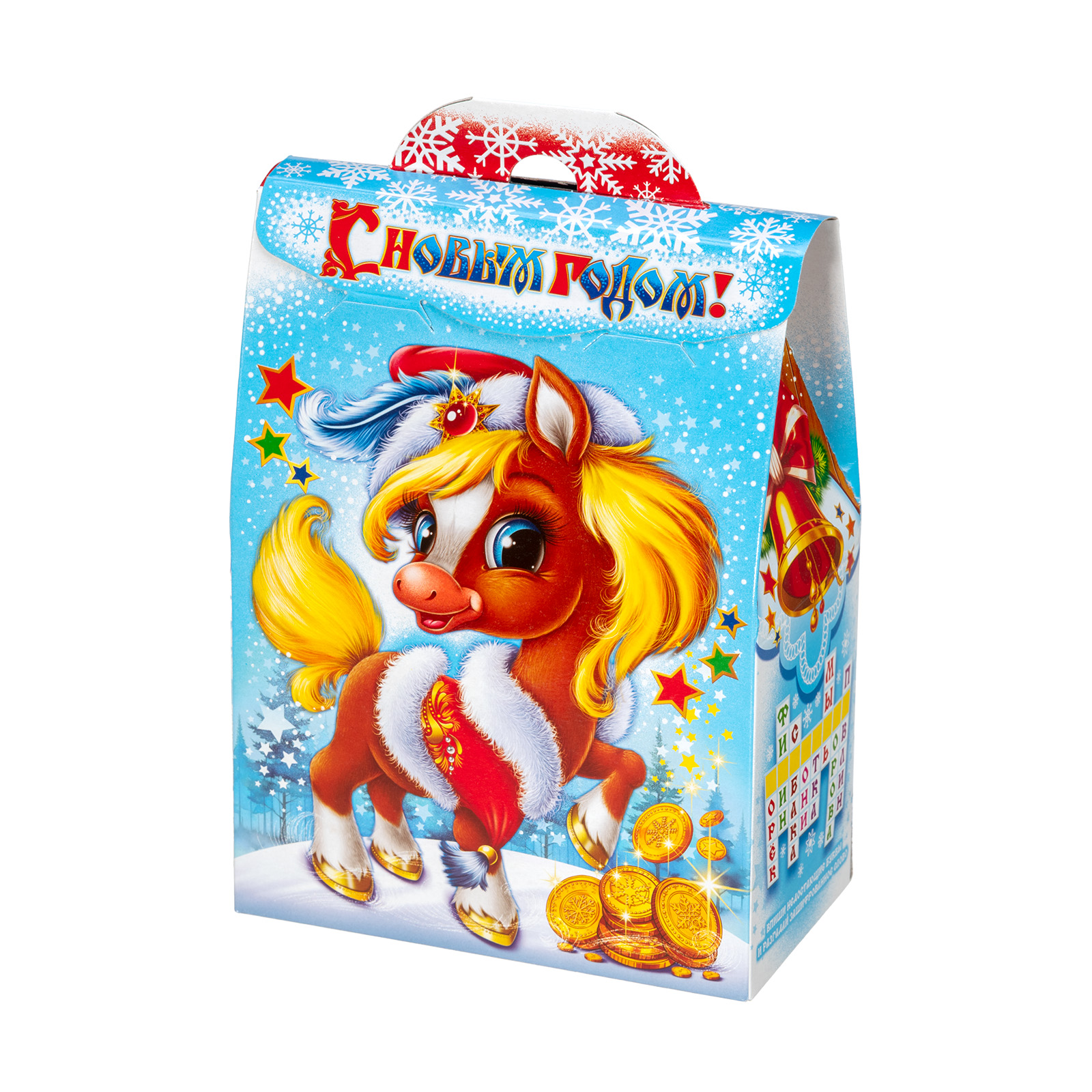 Многие считают, что Новый год - это та самая пора, когда даже самые невероятные желания могут сбываться! Набор “В ожидании чуда” - это как раз про исполнение мечт!  Сладости бережно упакованы в небольшую картонную коробочку нежно-голубого цвета. На ней есть поздравительная надпись, рисунок огненно-рыжей лошадки, а также небольшой праздничный кроссворд сбоку. Разгадав его, ребенок получит доступ к сокровищам!  В состав подарка входит 700 грамм отборных кондитерских изделий от ведущих кондитерских фабрик и небольшой памятный сувенир в виде символа года.