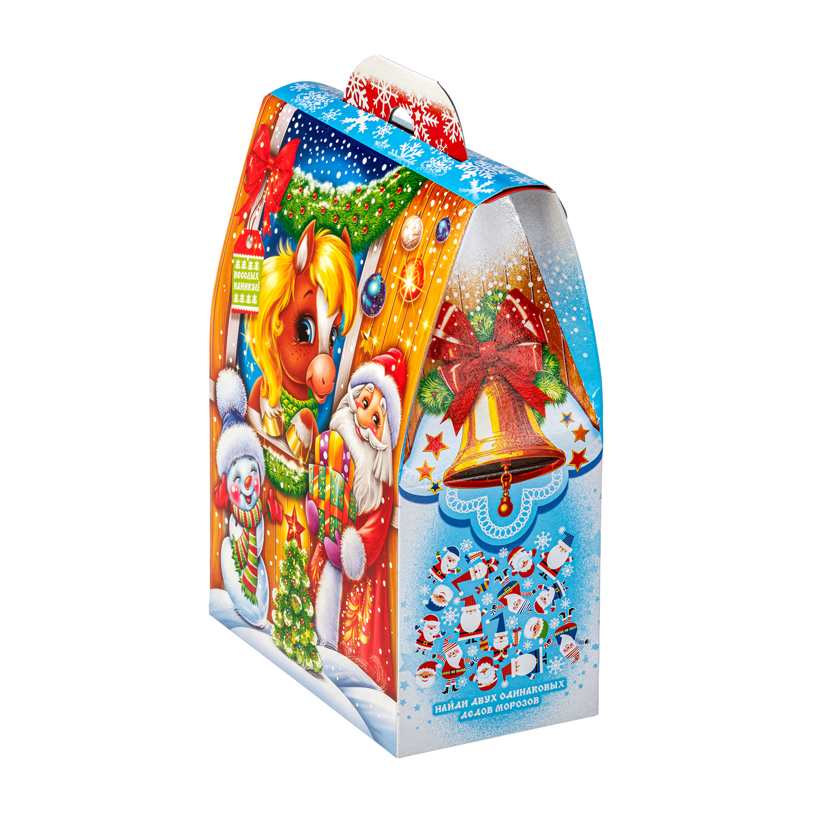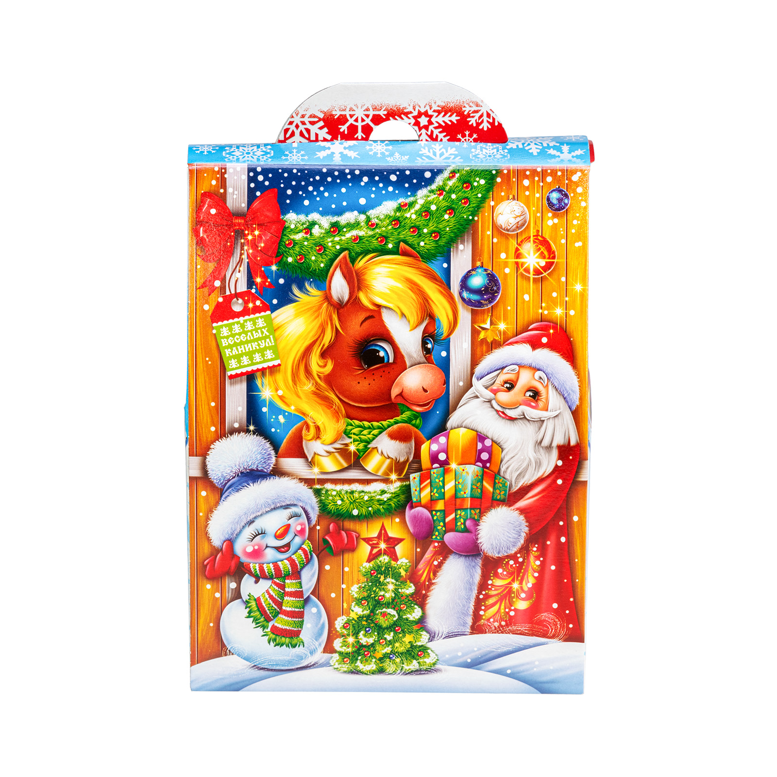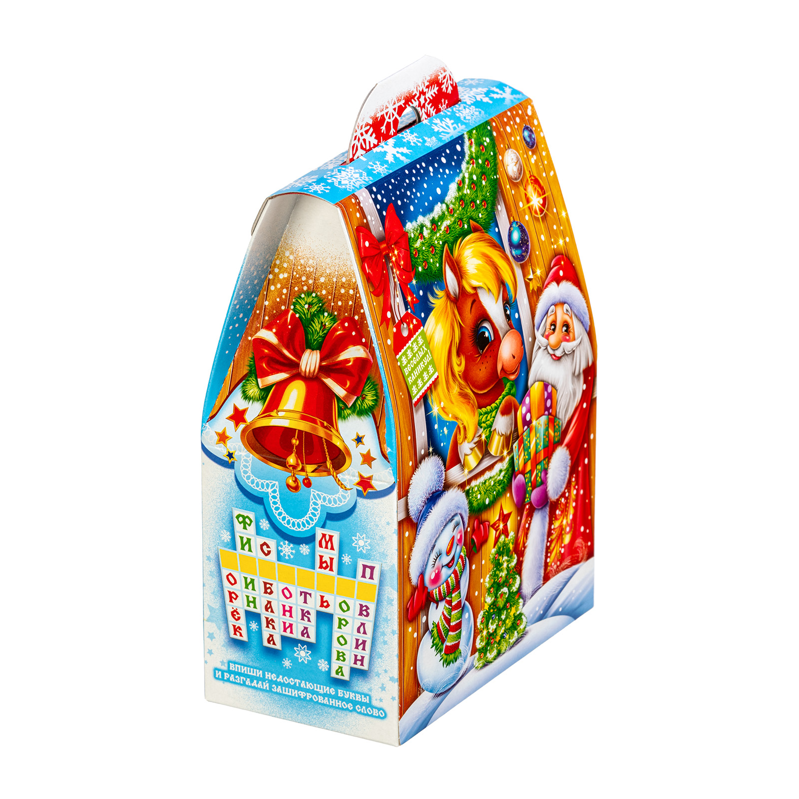Многие считают, что Новый год - это та самая пора, когда даже самые невероятные желания могут сбываться! Набор “В ожидании чуда” - это как раз про исполнение мечт!  Сладости бережно упакованы в небольшую картонную коробочку нежно-голубого цвета. На ней есть поздравительная надпись, рисунок огненно-рыжей лошадки, а также небольшой праздничный кроссворд сбоку. Разгадав его, ребенок получит доступ к сокровищам!  В состав подарка входит 700 грамм отборных кондитерских изделий от ведущих кондитерских фабрик и небольшой памятный сувенир в виде символа года.