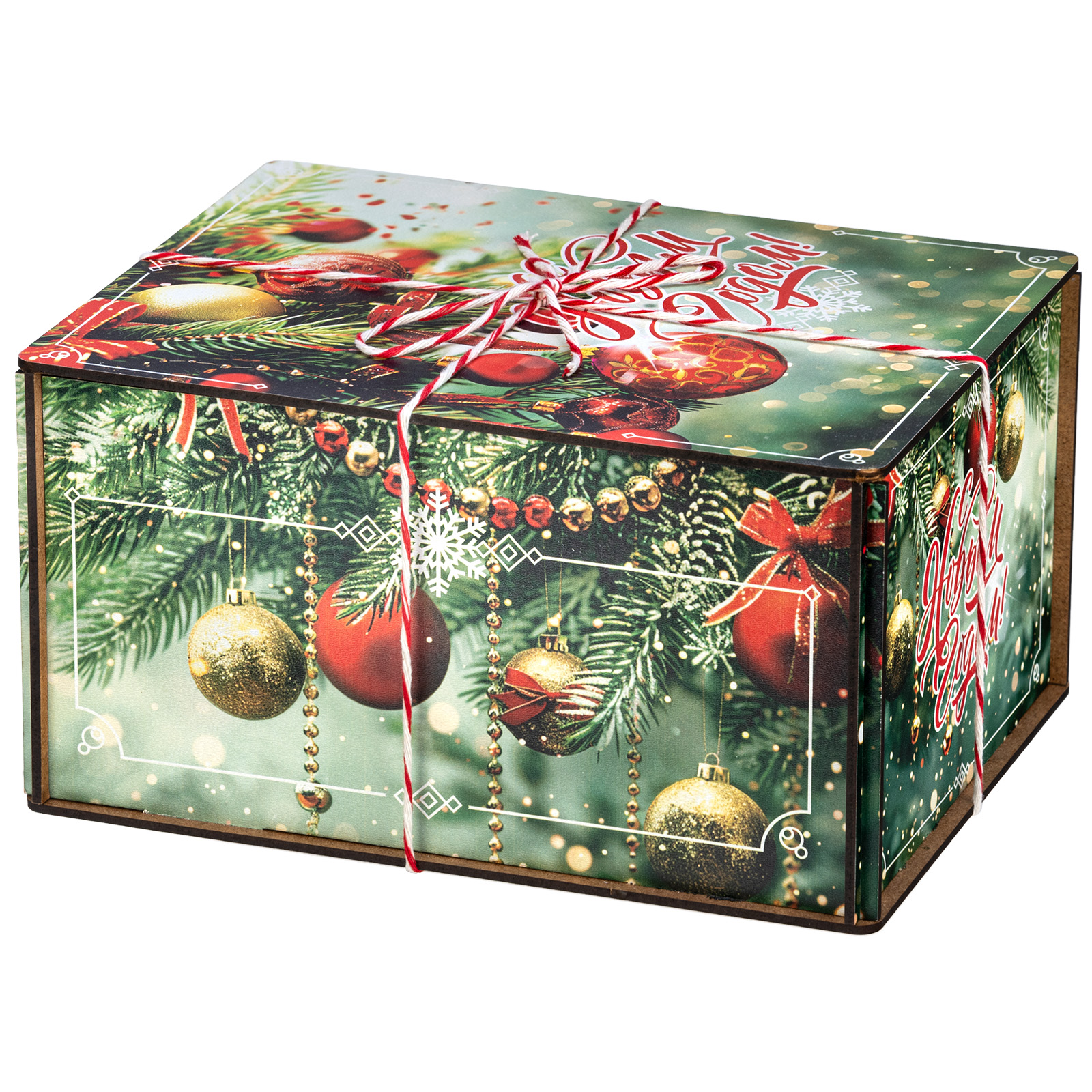 Яркая привлекательная упаковка и разнообразное вкусное наполнение - именно так можно описать этот подарочный набор. Килограмм самых разнообразных сладких угощений от ведущих кондитерских фабрик бережно упакован в  яркую деревянную коробочку, пышно украшенную рисунком роскошной еловой ветки. Сверху подарок перетянут яркой ручкой-шнурком, которая добавляет еще больше торжественности этому набору. Такой подарок прекрасно подойдет для поздравления сластены любого возраста: его можно смело выбрать как дня новогоднего праздника в детском учреждении, так и для корпоратива в крупной компании - восторженные отзывы гарантированы.